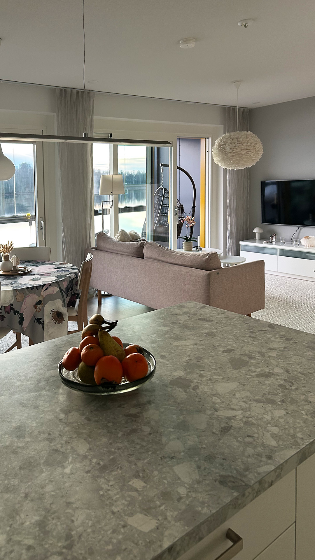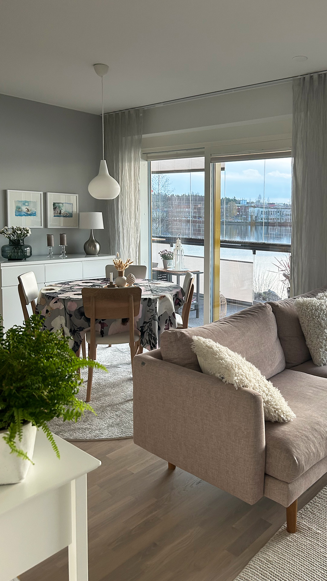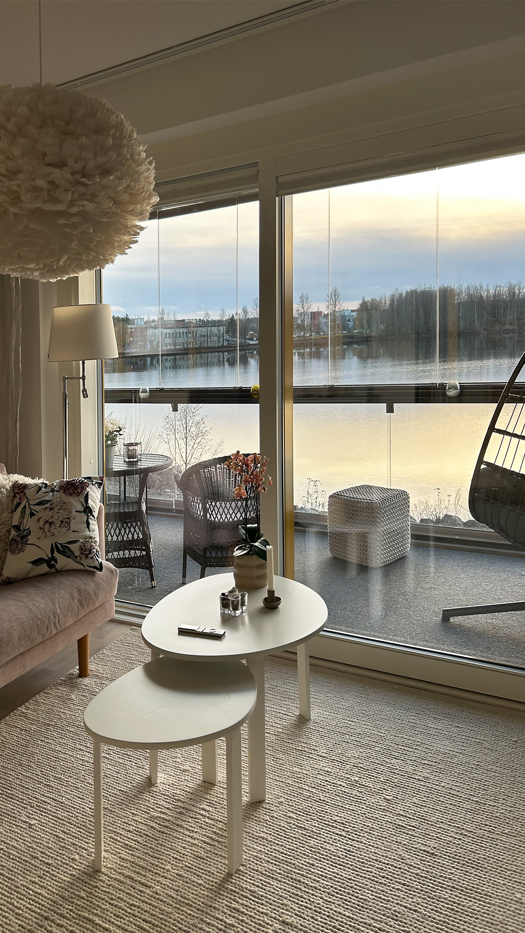 Nykyiseen kotiimme ihastuimme jo esitteen kuvien perusteella. Asunnon pohjaratkaisu oli niin toimiva, että asia oli sillä selvä. Eikä siitäkään pääse mihinkään, että Saimaan rannalla sijaitseva kerrostalo ei voisi olla paremmalla paikalla. Järven väreilyä voi ihailla ikkunoista tai vaikka keittiön saarekkeen äärellä ruokaa laittaessa. Tuntuu, että koti ja kesäasunto olisivat samassa paketissa, kun omasta ikkunasta voisi melkeinpä heittää onkivavan veteen.