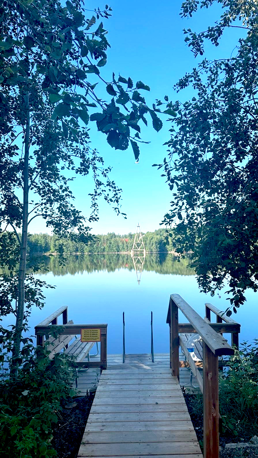Nikkaroimme erään toisen asukkaan kanssa myös telineet sup-lautojen säilytykseen. Viime kesänä valmistunut yhteinen uimalaituri on kaikkien suosikki. Onhan se upeaa, kun voi kävellä kylpytakissa muutaman kymmenen metriä ja pulahtaa Saimaaseen uimaan.
