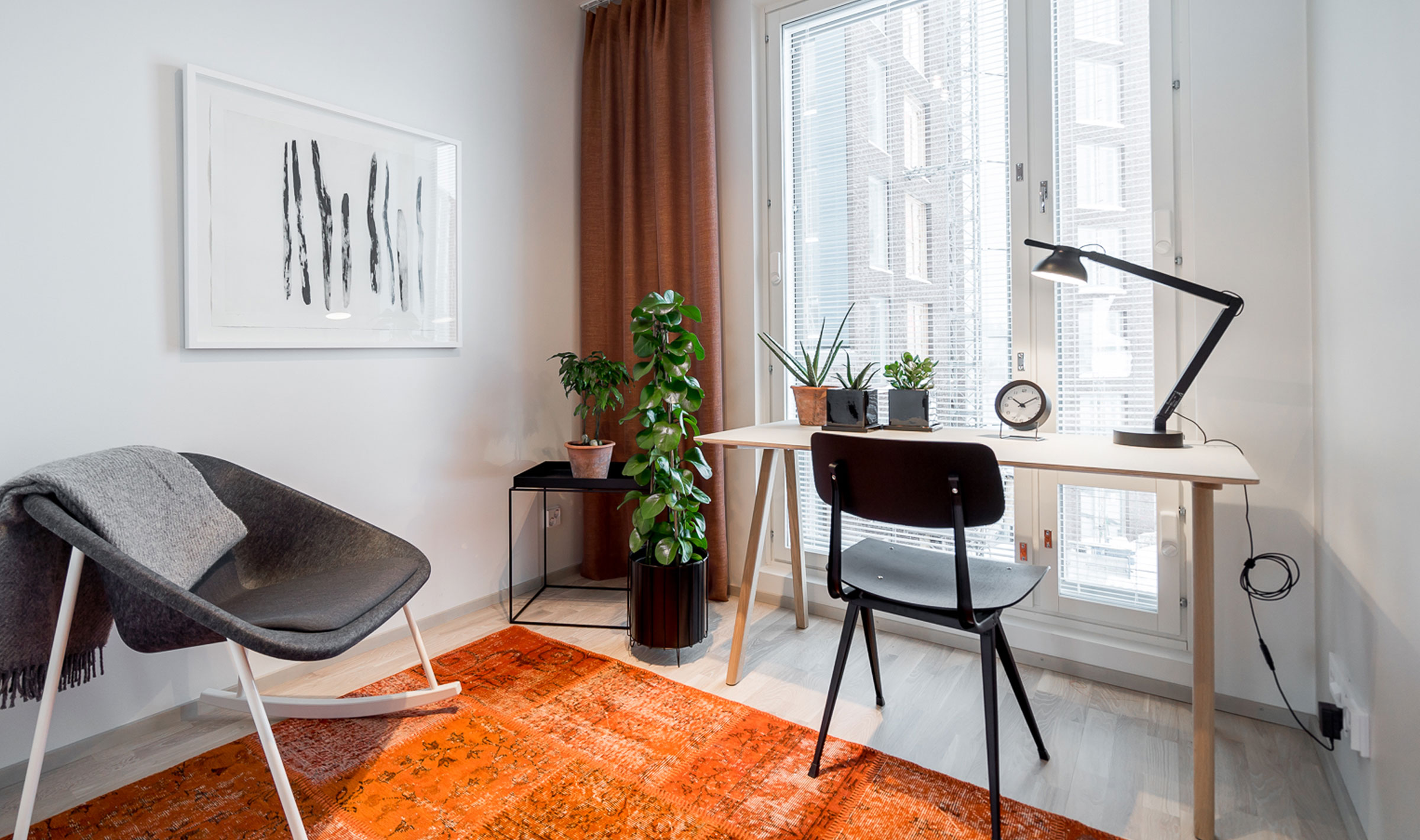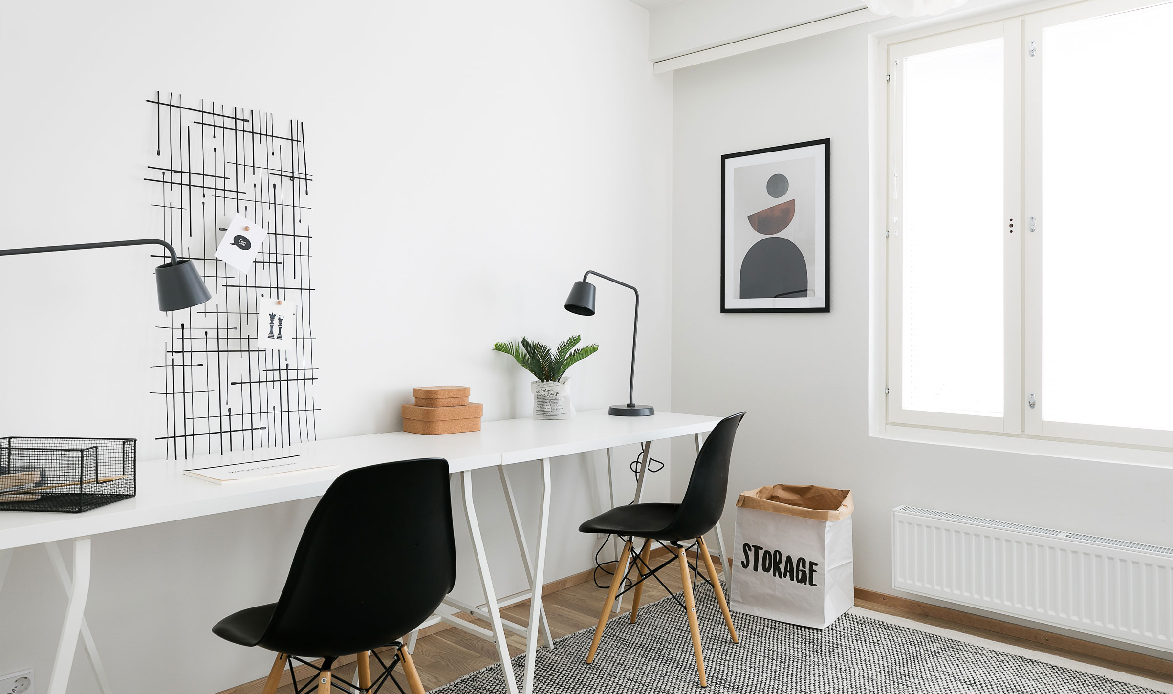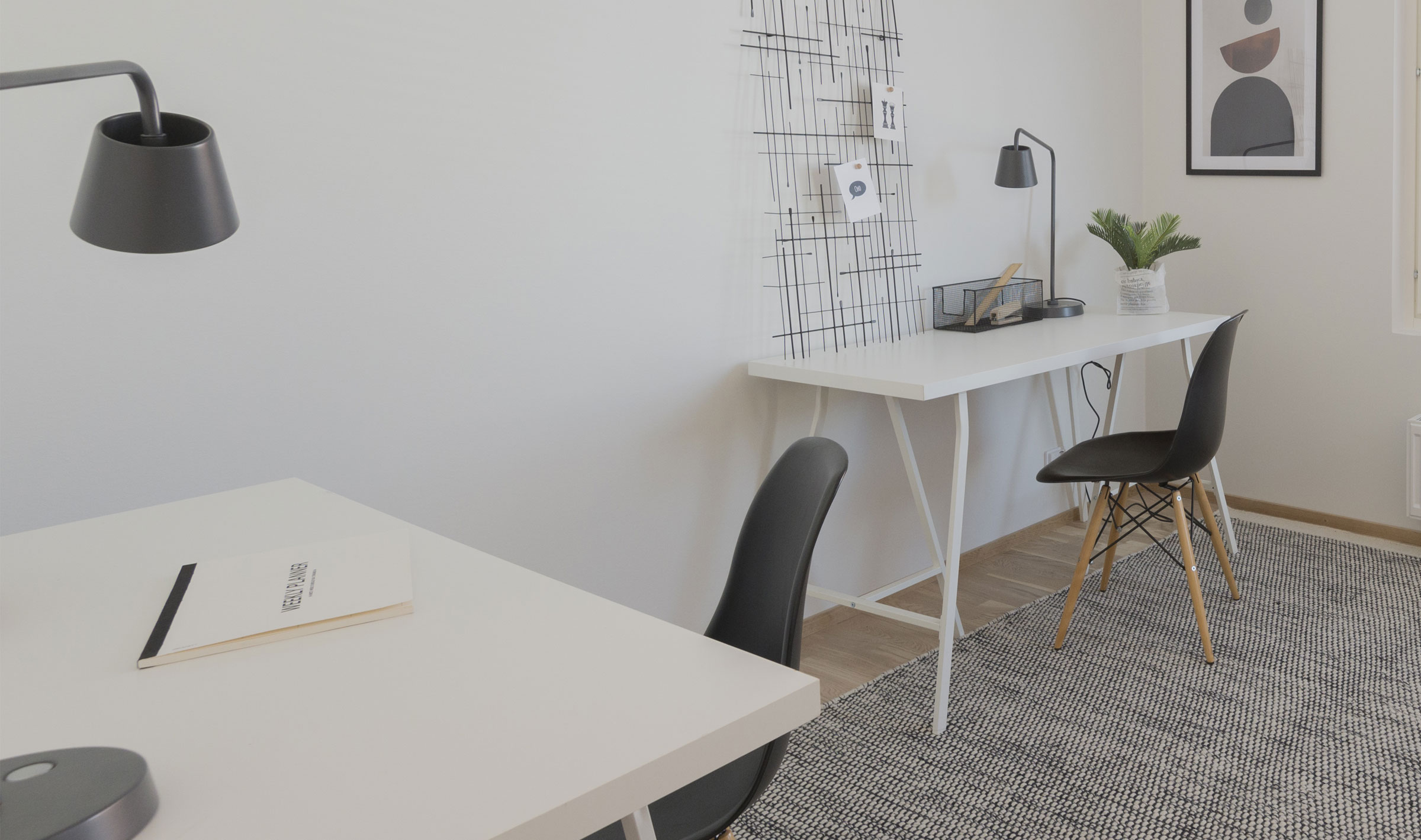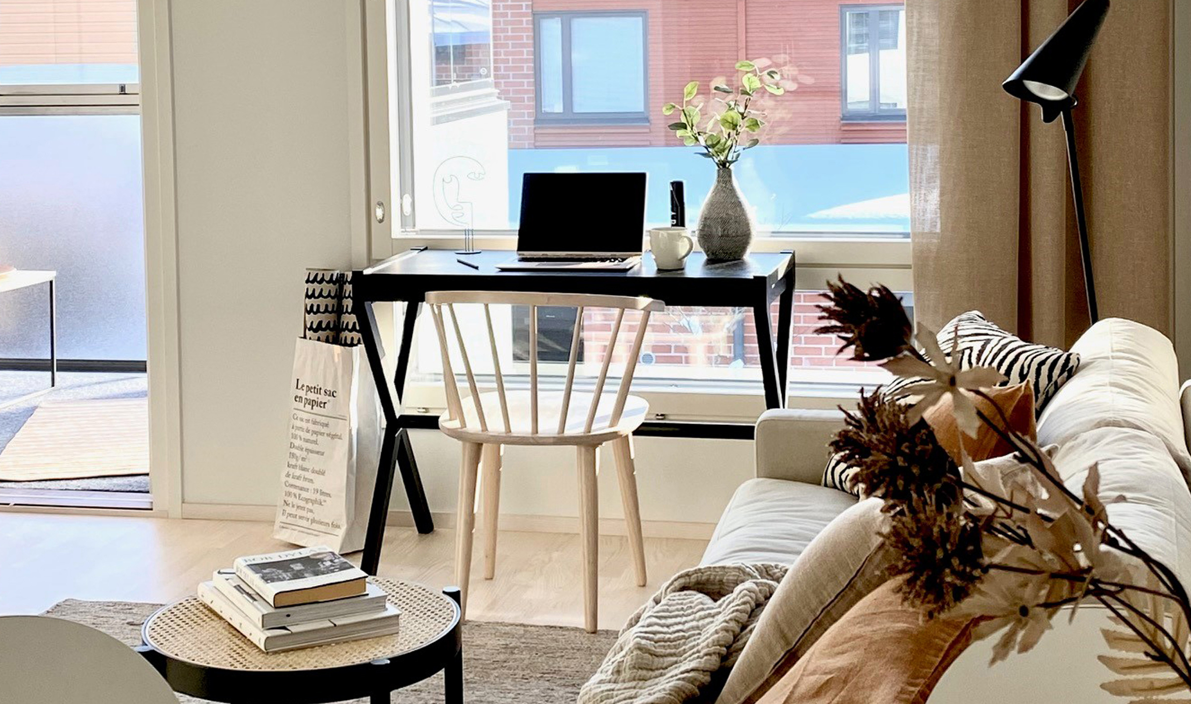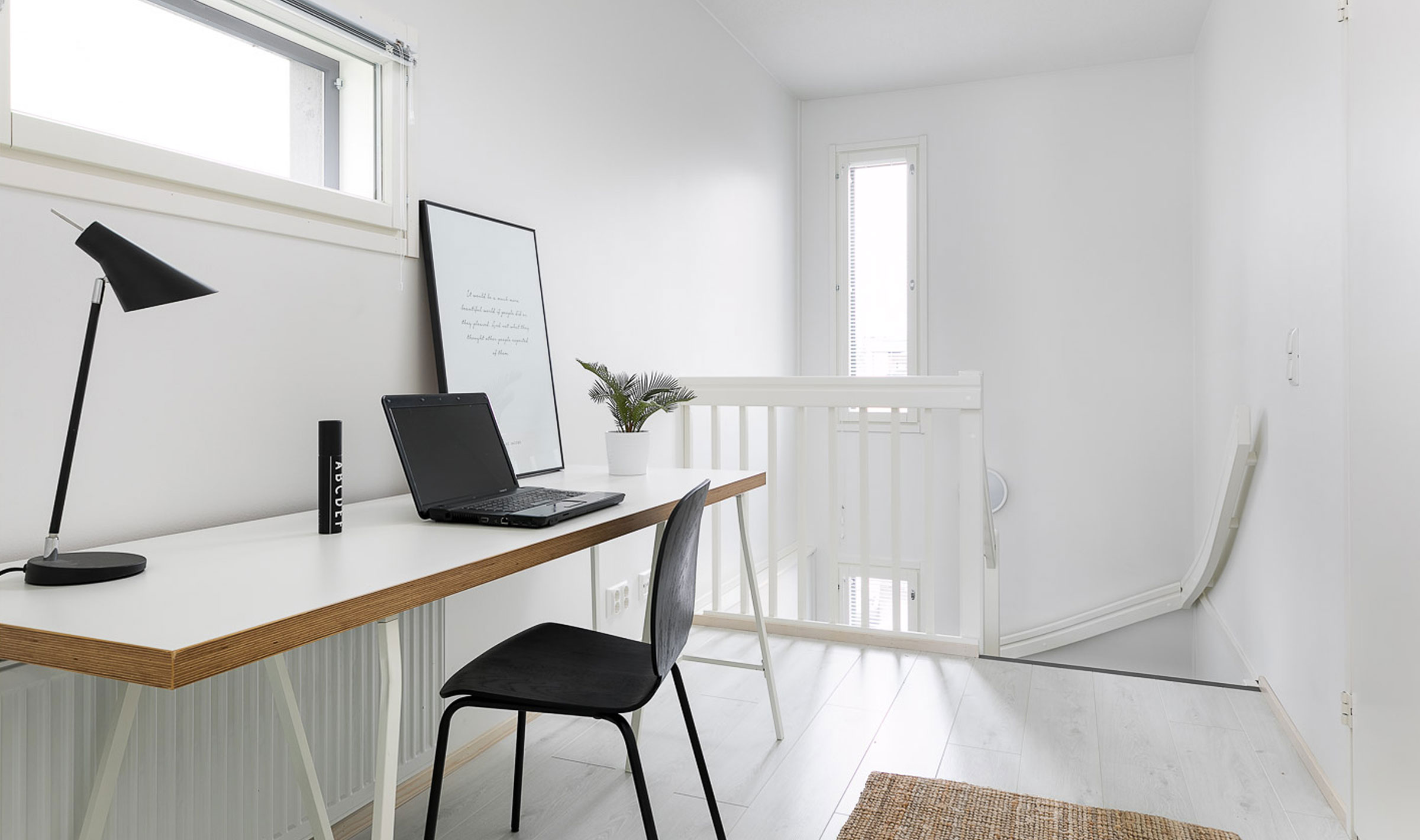 Inspiroivan työtilan tekeminen ei ole kiinni kodin koosta! Toimivan ja mukavan työtilan voi toteuttaa sekä pieneen että isoon kotiin – ja taloyhtiön yhteisiin tiloihin.