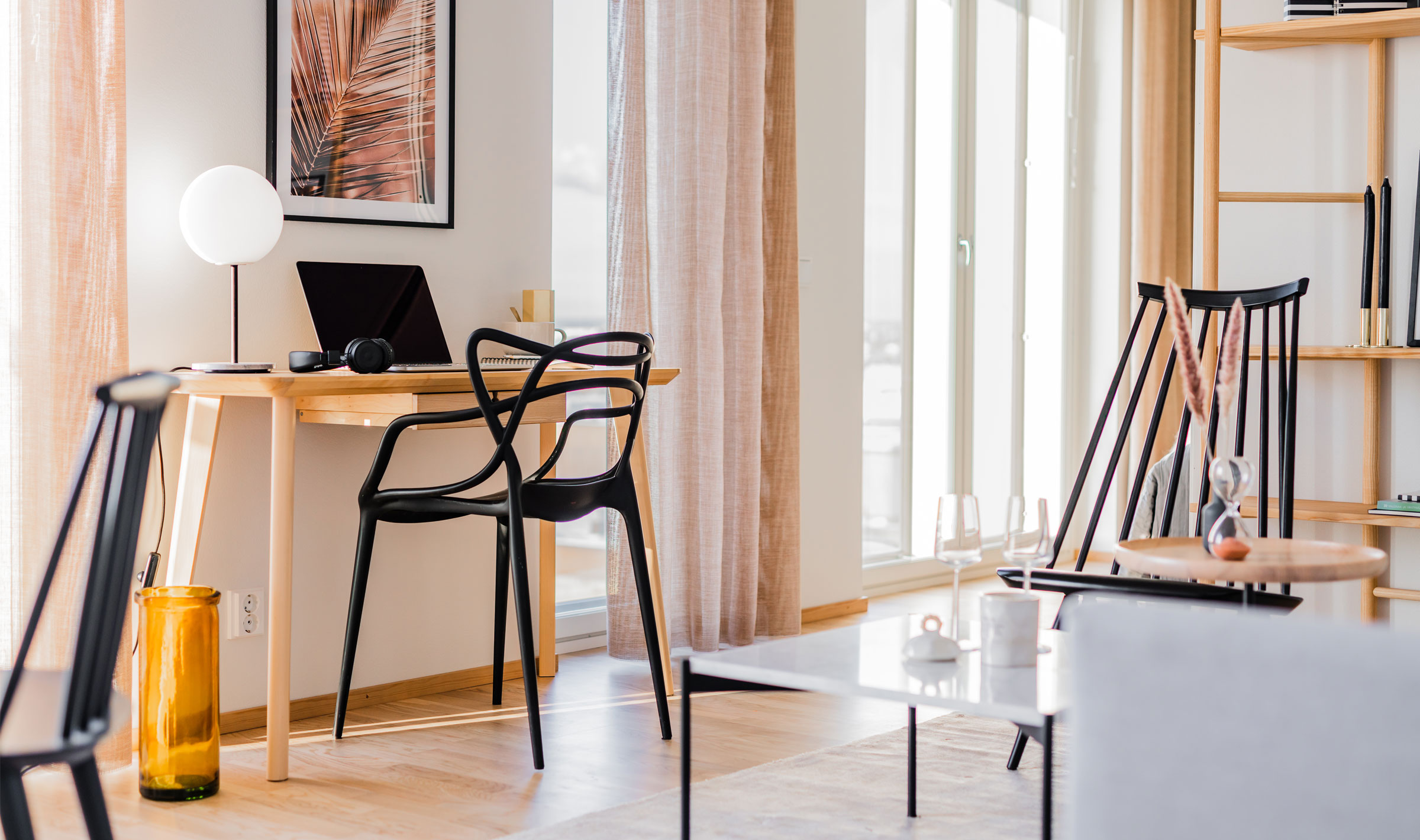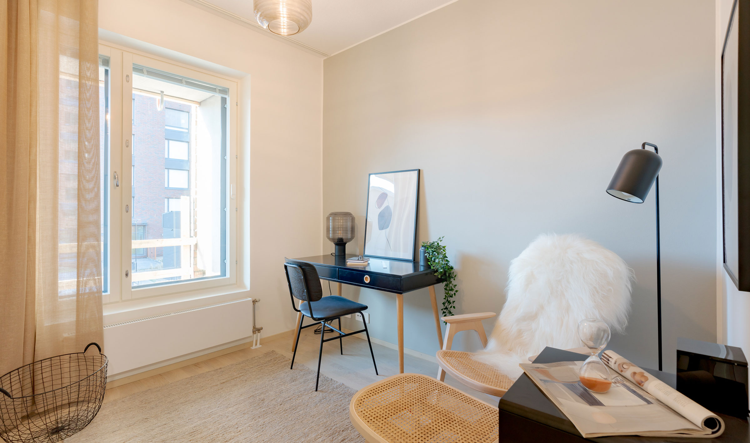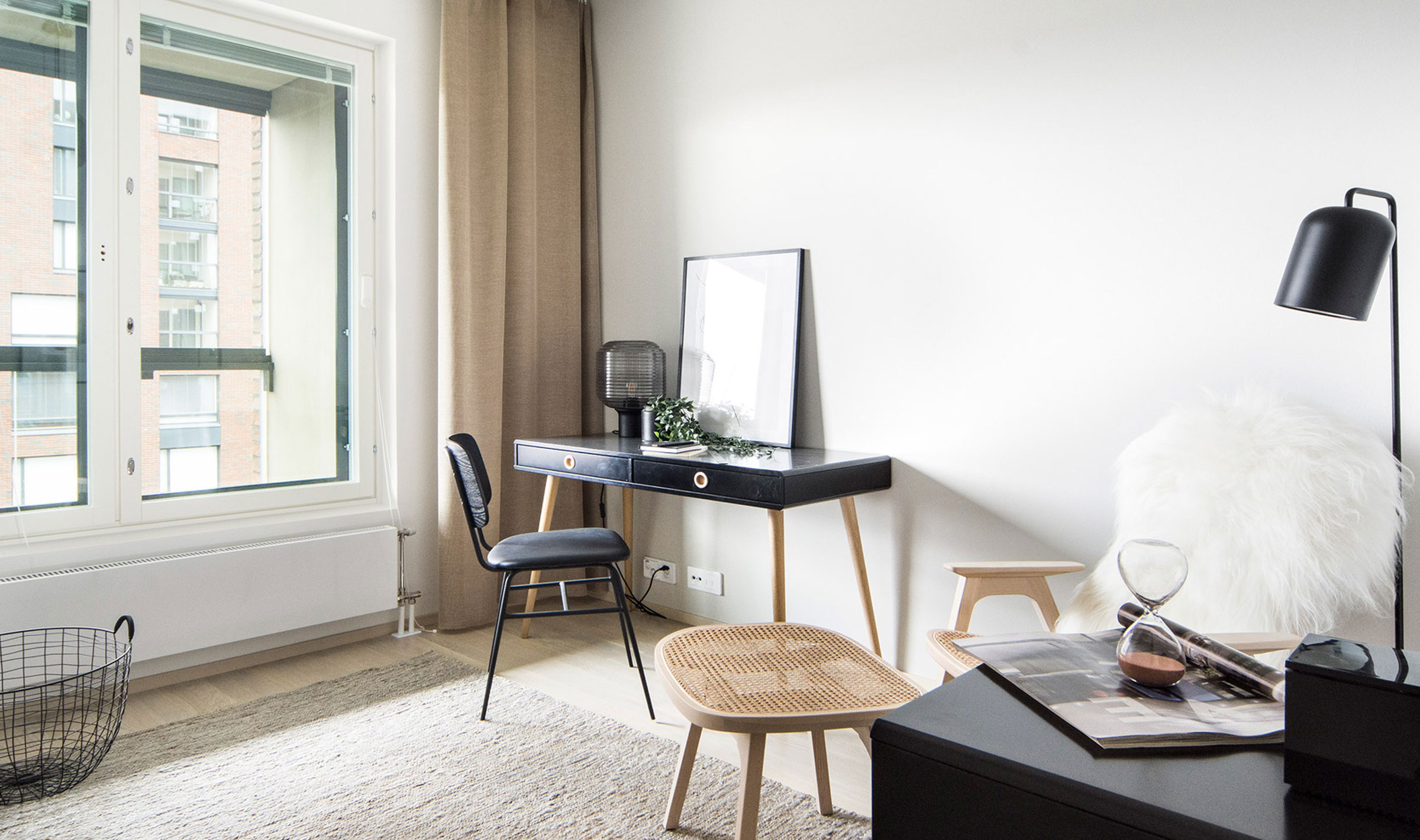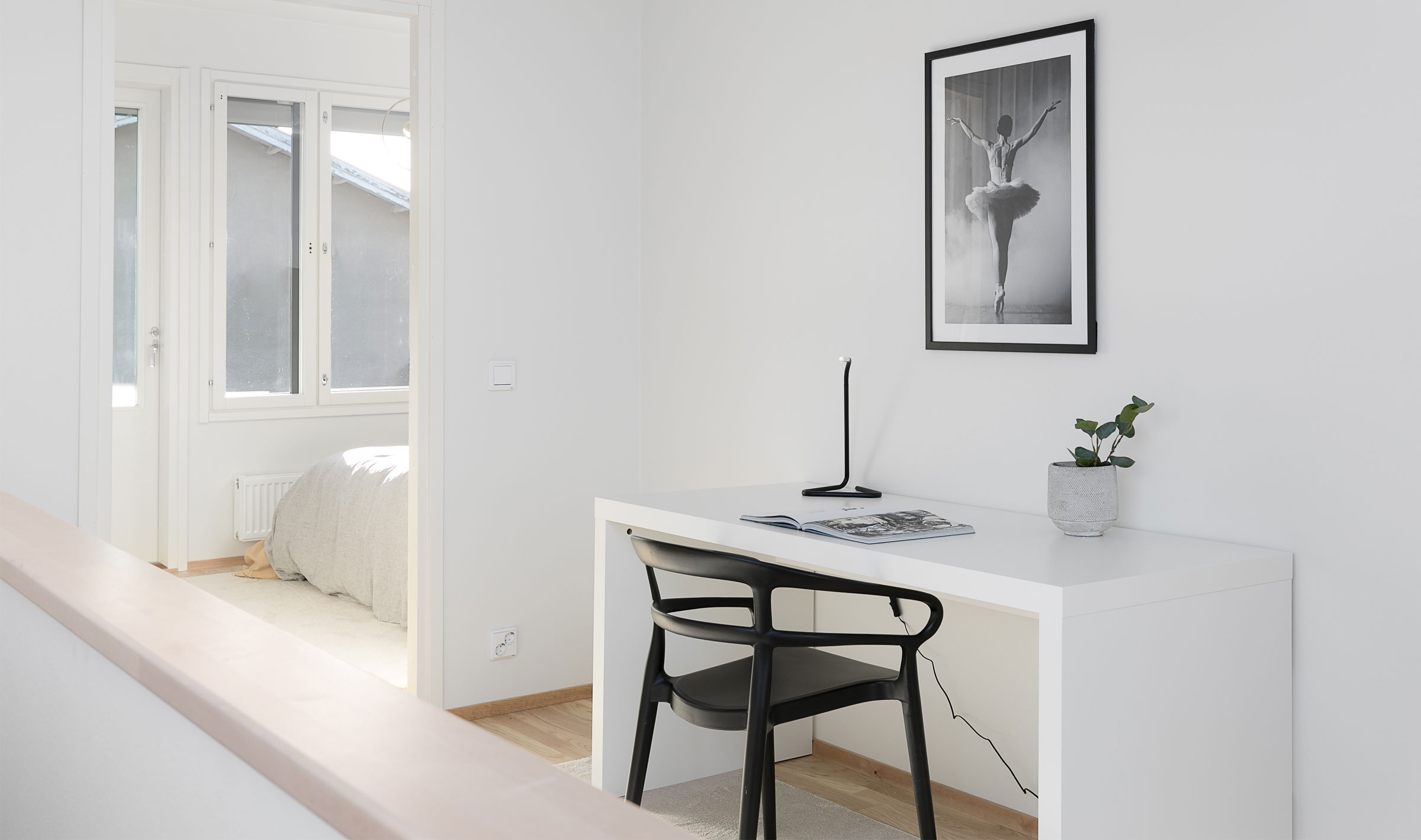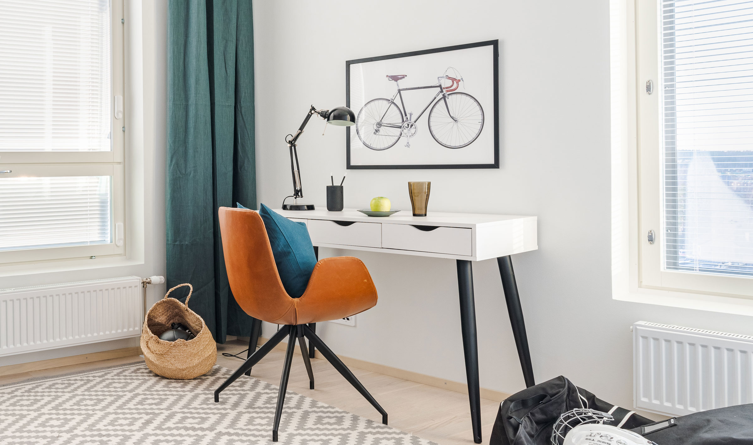 Inspiroivan työtilan tekeminen ei ole kiinni kodin koosta! Toimivan ja mukavan työtilan voi toteuttaa sekä pieneen että isoon kotiin – ja taloyhtiön yhteisiin tiloihin.
