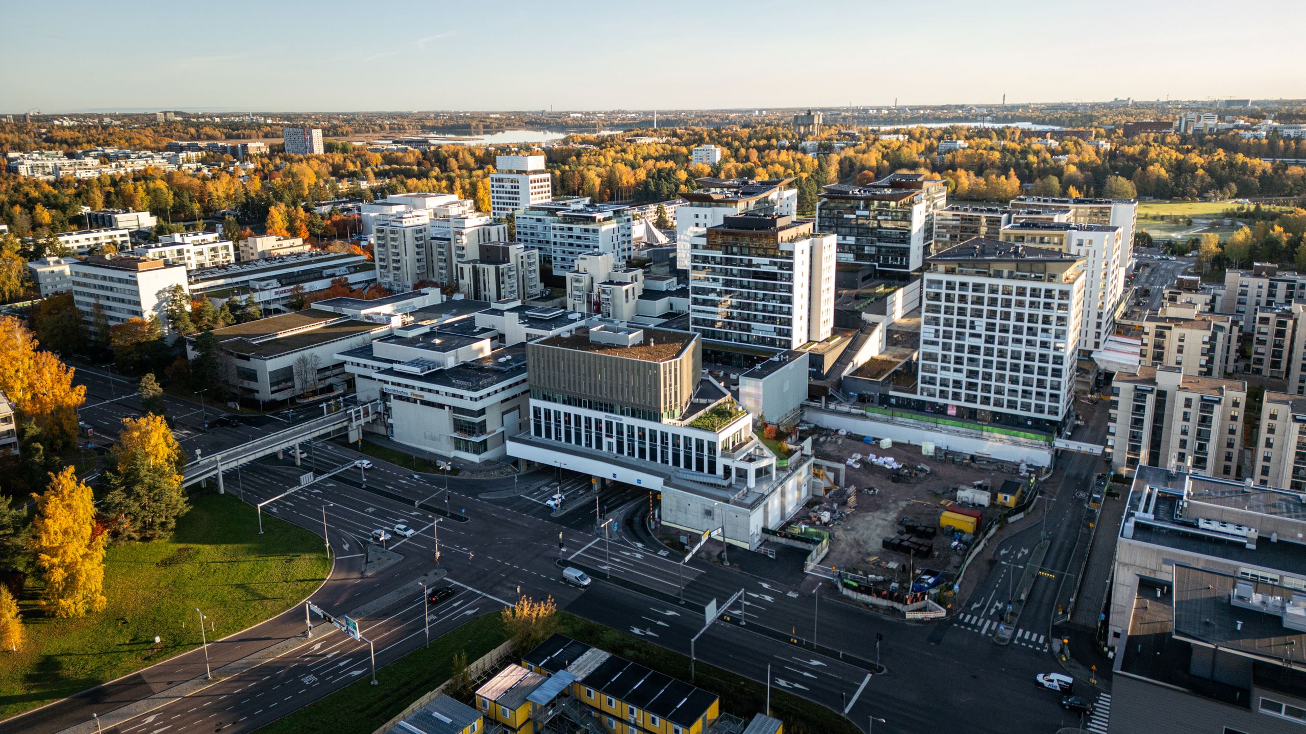 If you arrive by bus, the right stop is at the Tapiola bus terminal (platforms 1-7). First, walk towards Tapiola metro station. When you see the escalators leading to the metro, turn right. Follow the signs for door B and Sammonsilta. Go up all the escalators. When you come out after the escalators to Sammonsilta (also known as Merituulentori), the Tuultenristi building is on the edge of it.