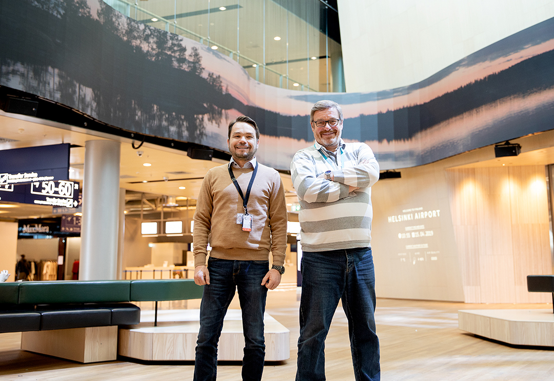 The central plaza of Helsinki Airport’s long-haul terminal is a tranquil environment after the morning rush hour. You can hear birdsong and other sounds of nature in the background. The continuous chain of LED screens that wraps around Aukio is showing breathtaking views of the scenery at Koli National Park, soon to be replaced by equally powerful images from other Finnish landscapes. There are passengers waiting for their connecting flights, sitting on sofas around the plaza. For them, Helsinki is only a short stop, a taste of the exotic North before they continue to their final destination. Nevertheless, Helsinki Airport wants to make an impression of Finland on their minds, which may inspire them to return one day.