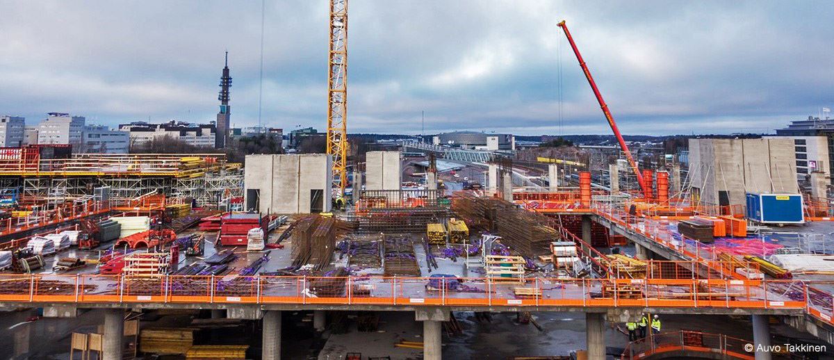 Even if the hustle and bustle of the site can also be seen from the outside, the sheer size of the project is hard to grasp. Already at this point, Mall of Tripla and its parking facilities have absorbed approximately 136,000 cubic metres of concrete and 12,000 tonnes of concrete reinforcements. The parking facility and the train station alone will have more than 70 lifts and 40 escalators, and their installations have already started. Approximately 8,000 square metres of ceramic and mosaic tiles will be laid in the shopping centre, the train station will have a glass ceiling covering more than 1,000 square metres, and the station and Little Manhattan will feature more than 6,000 square metres of laid granite tiles. Not to mention all the plumbing, sprinklers, air conditioning and electrical installations that are progressing on the site at a swift pace.
