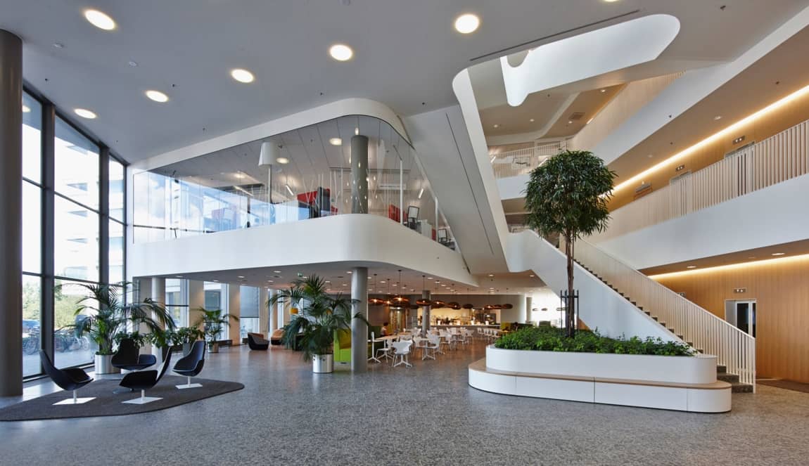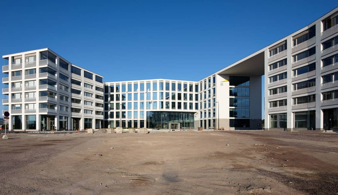 There is approximately 11,000 square metres of modern office space on five floors, the majority of which is occupied by EY. The building has a further floor and a half available to other tenants. The building's open lobby, café and restaurant are the heart of the building and serve as meeting places. On the basement level, there are parking spaces for bicycles along with locker rooms and showers to promote bicycle commuting. The complex includes two residential buildings in addition to the office building.