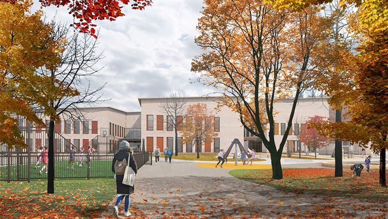Construction work started in late 2022 and the new school premises will open their doors to users in January 2026. Completion and exterior work will continue until summer 2026.