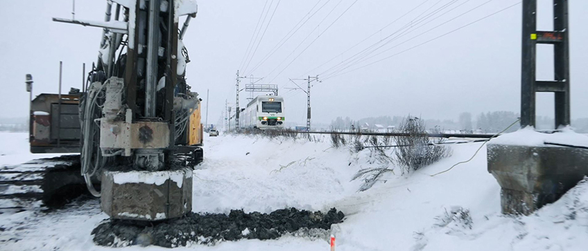 The project involves stabilising the soil. In total, there will be about 150 kilometres of stabilisation columns in the ground. After that, we will build the foundations of the electric railway tracks. The plans have been developed together with the customer (the Finnish Transport Infrastructure Agency). Stabilisation is rare in railway construction in Finland.