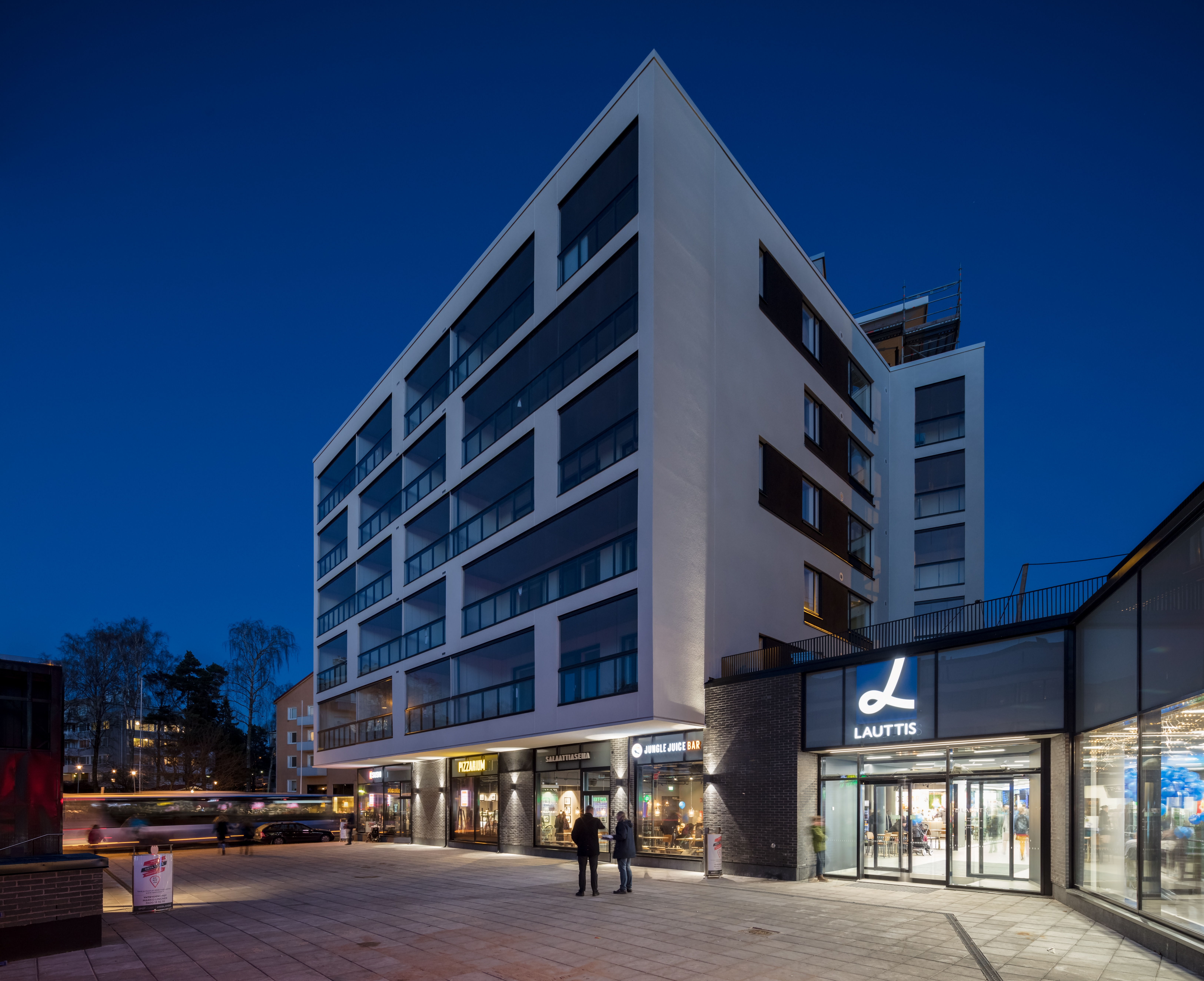 The shopping centre has around 25 shops: two supermarkets, an Alko off-licence, pharmacy and plenty of other shops, cafés and restaurants as well as the Lauttasaari post office. The total floor area is around 6,000 square metres. The six-storey residential buildings in Lauttis have almost 140 apartments altogether, with the apartment sizes varying from 29 to 108 square metres. The Lauttasaari metro station will also be completed in connection with the centre.