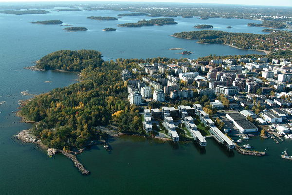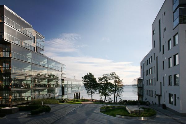 Merenkulkijanranta in Lauttasaari is a one-of-a-kind residential area that is situated by the sea and, partially, on top of the sea. At the shore, the buttressed buildings extend over the sea. The area brings an architecturally significant element to the maritime, urban landscape of Helsinki.