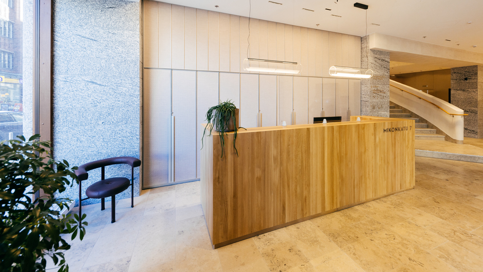 We carried out the renovation and extension of a property located at Mikonkatu 7, in the centre of Helsinki, for Ilmarinen Mutual Pension Insurance Company. The renovation project brings modern, high-quality and adaptable head-office-level office premises and new commercial premises to the city centre. The property is centrally located at the corner of Yliopistonkatu and Mikonkatu and offers unique city views towards Ateneum and the Railway Square.