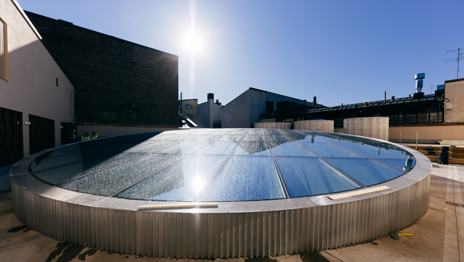 The six-storey building was renovated into a modern office building by demolishing and replacing a large proportion of the old indoor structures and renewing the technical building systems. The project included extensive structural demolitions, such as changing the placement of lifts and staircases and demolishing all internal structures and technical building systems. The roofs were replaced, and a new atrium with a glazed roof was built in the courtyard. The street-side corner was renovated and it makes a new main entrance to the offices. There will be new commercial premises on the first floor, and all the facades have been renovated.