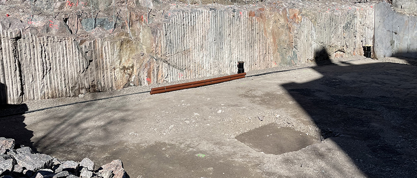 Not all of the rock was removed by blasting, some was removed with a wedge mounted on an excavator. No accidents or near misses occurred on the site. There were 7,000 cubic metres of rock to be extracted from the 1,000 square metre plot. The work was completed on schedule in four and a half months.