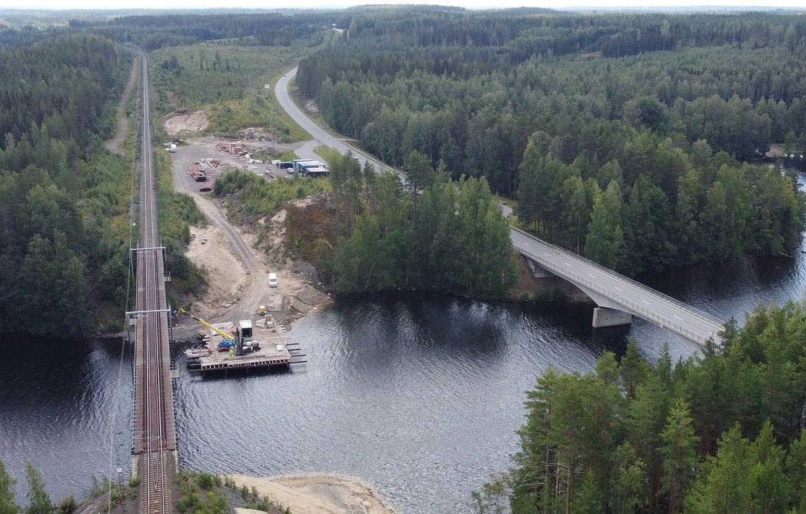 Together with the Finnish Transport Infrastructure Agency, we are carrying out the construction contract for the new Syrjäsalmi railway bridge and rail line in Kitee, Finland. The construction site is located about 45 meters from the existing bridge, which will be closely monitored during construction. The new Syrjäsalmi railway bridge will connect the southern and northern parts of Lake Pyhäjärvi.