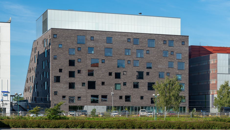 The building’s gross floor area is 28,400 m². It consists of classrooms for both individual and cooperative learning, lecture rooms and group work spaces as well as various laboratory facilities, including an acoustics lab, power electronics lab and concrete lab. The building also features office premises, shared-use facilities as well as premises for a restaurant, sports and parking, among other things.