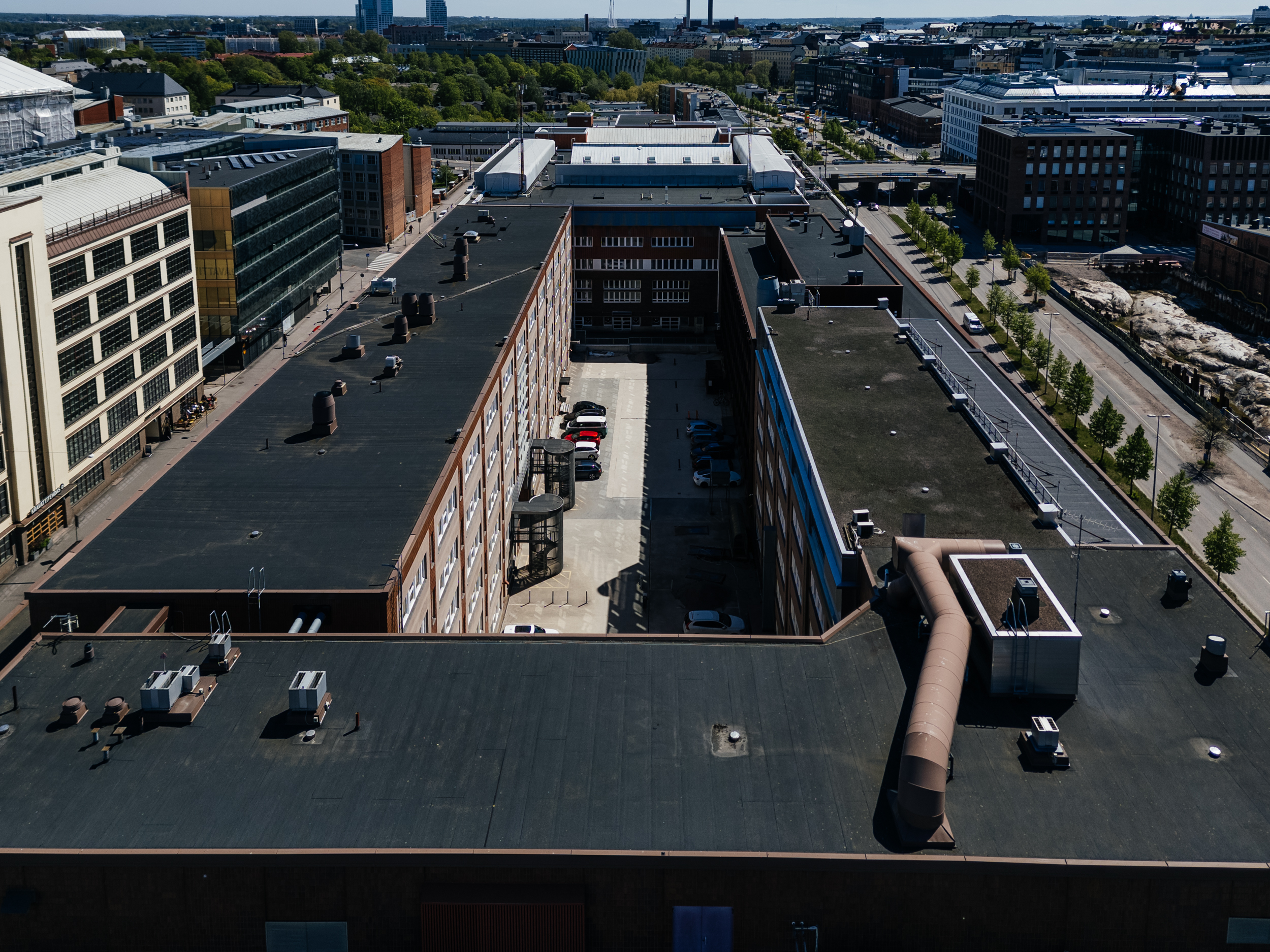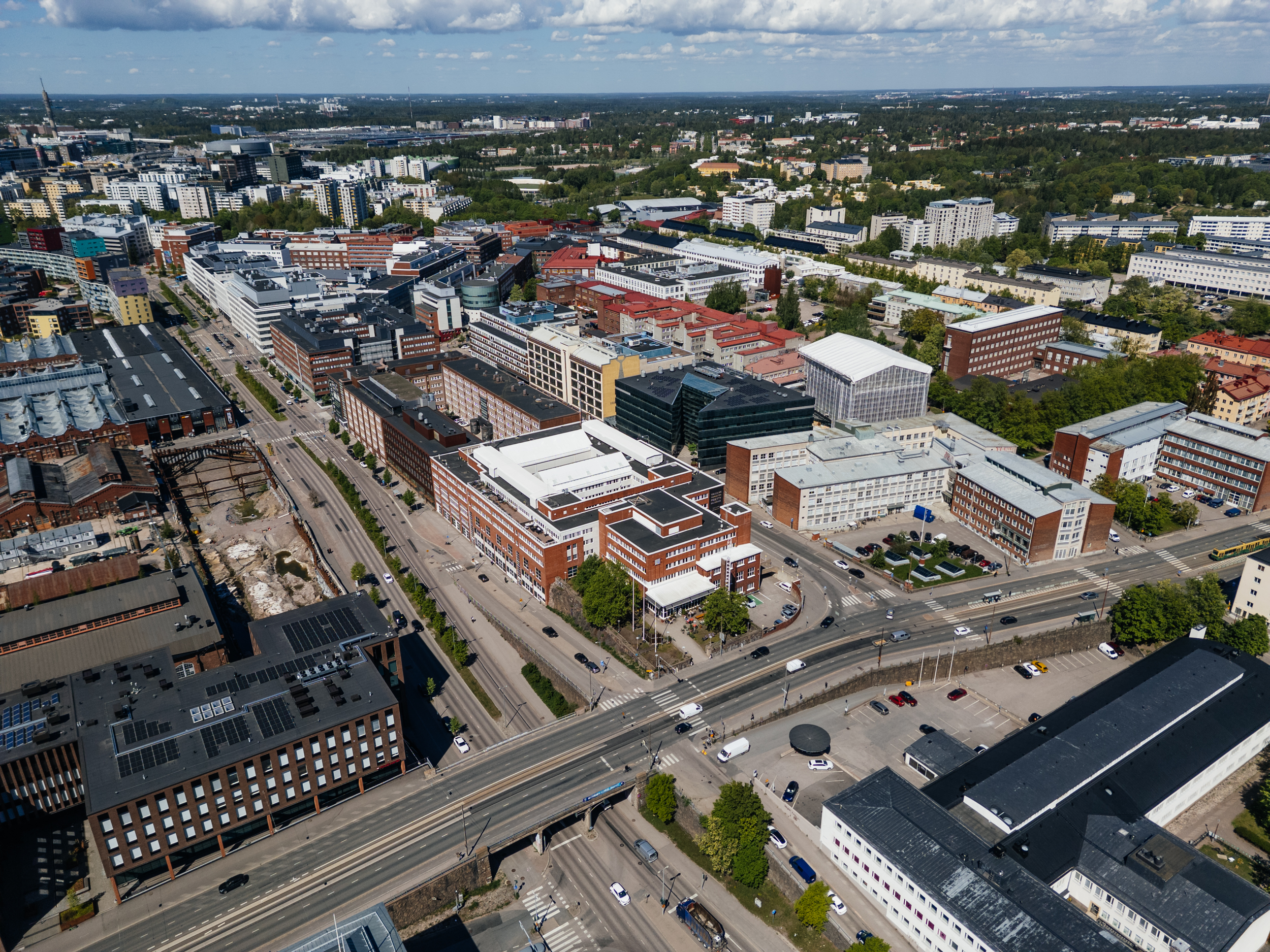 We want to breathe new life into an underused block in the area bordered by Teollisuuskatu, Sturenkatu, Elimäenkatu and Telekatu. By renovating, partially demolishing, removing building parts intact, and building new ones using circular economy principles, we will bring homes, services, experiences and jobs to the block. In addition, the plan enables a large increase in greenery and natural light. All of this is done while respecting the original identity, history and architectural layers of the Vallila industrial area.