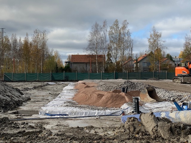 Työmaalla ovat paalutustyöt valmistuneet ja maarakennustyöt jatkuvat.