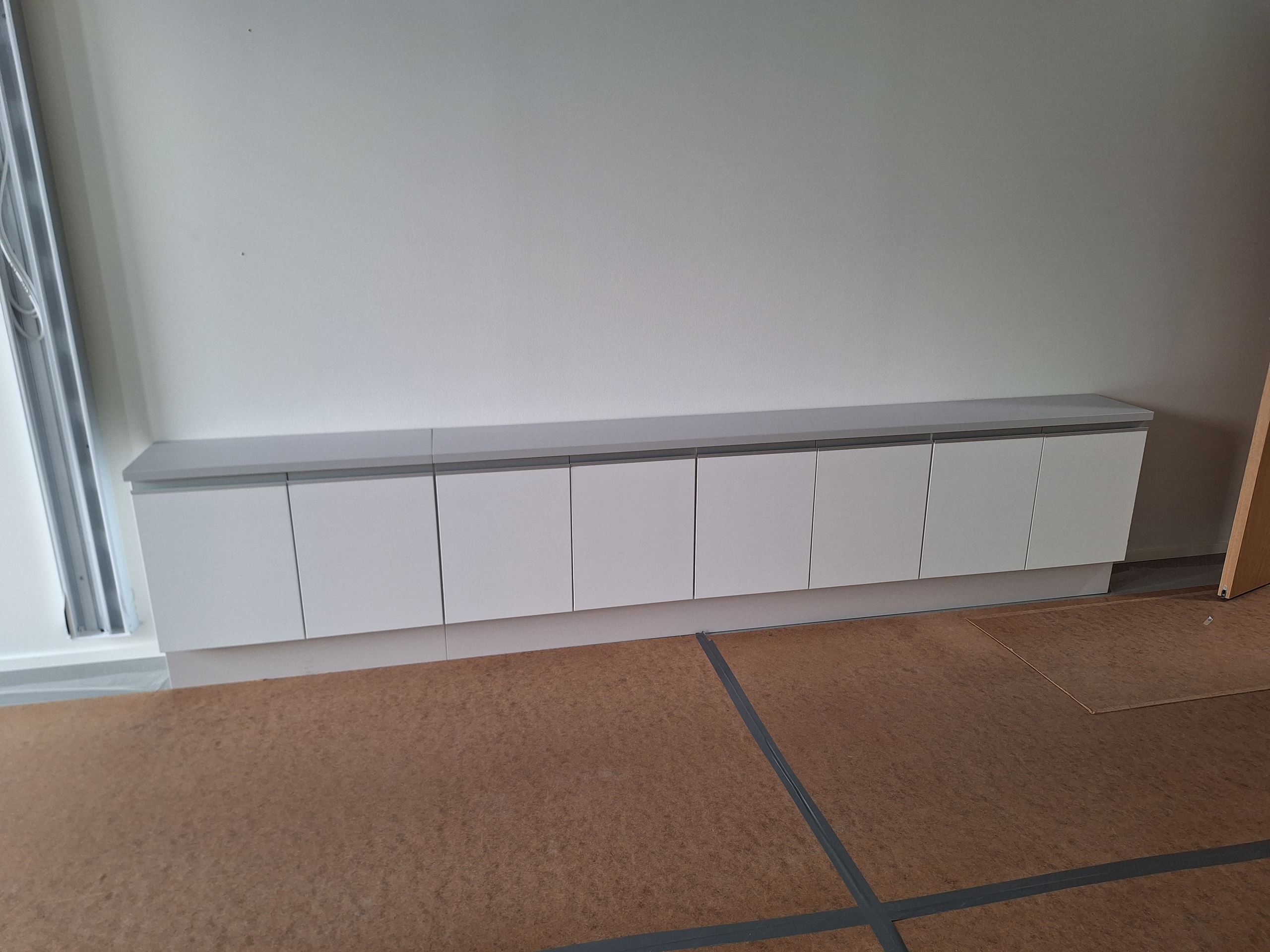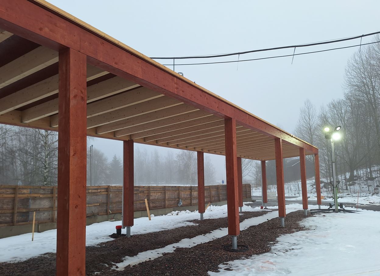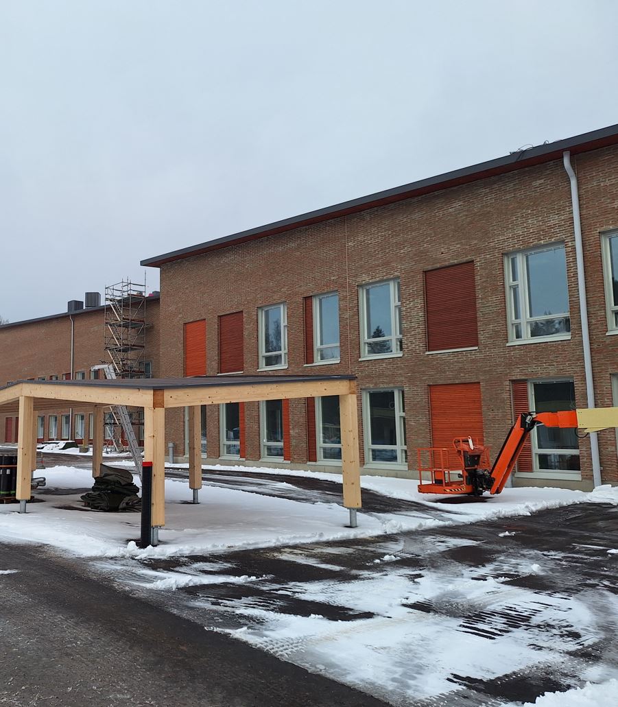 Pågående arbeten utanför är målning, skärmtak, installation av dörrar och plåtarbeten.