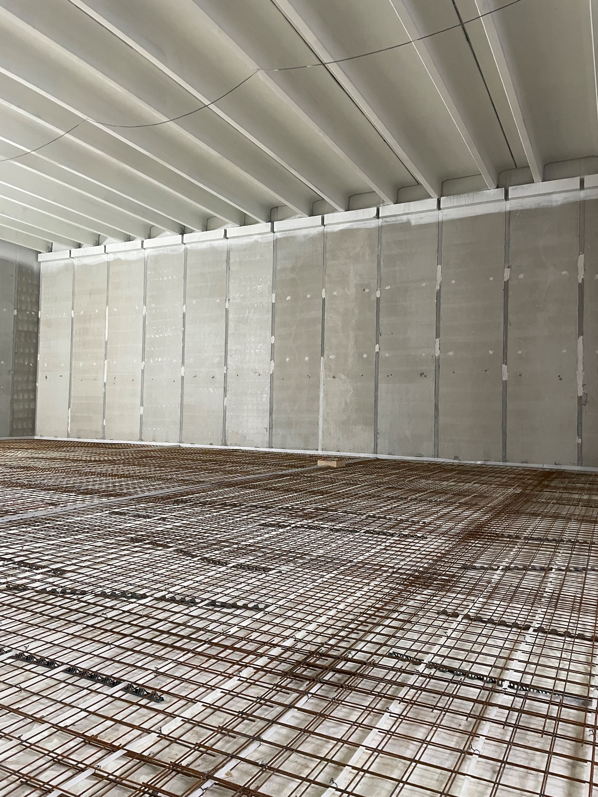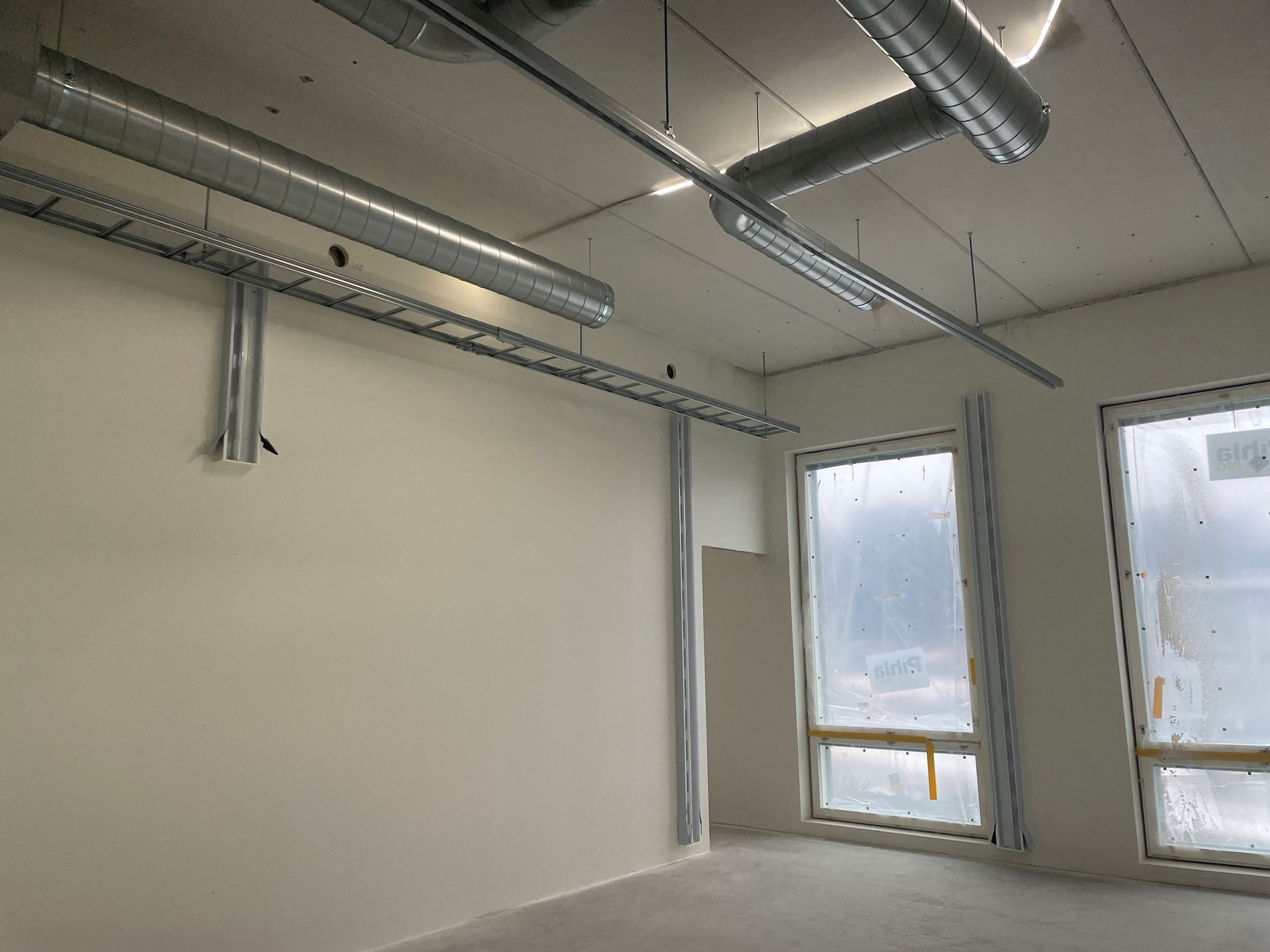VVS, installation av golvvärmerör, elinstallationer och installation av ventilationskanaler framskrider. P1-städningen fortsätter före ventilationsinstallationerna.