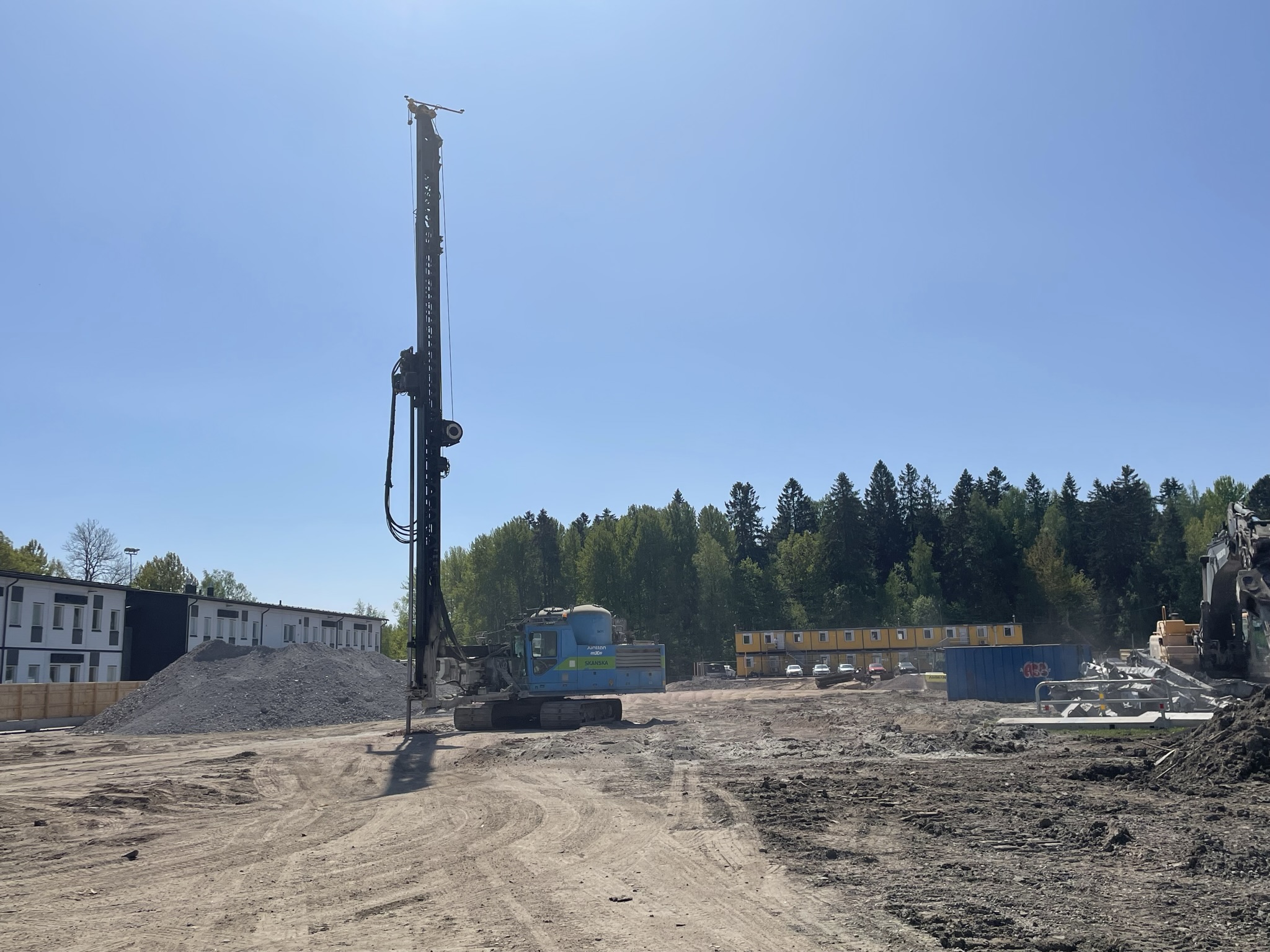 Pålningen påbörjas i början av juni. På det här sättet sätts största delen av pålarna i marken under skolbarnens sommarlov. Som längst pågår pålningen ända till september. Pålningen utförs huvudsakligen under vardagar mellan kl. 7-20 enligt beviljat bullertillstånd. Vi beklagar de besvär dessa arbetsskeden orsakar.