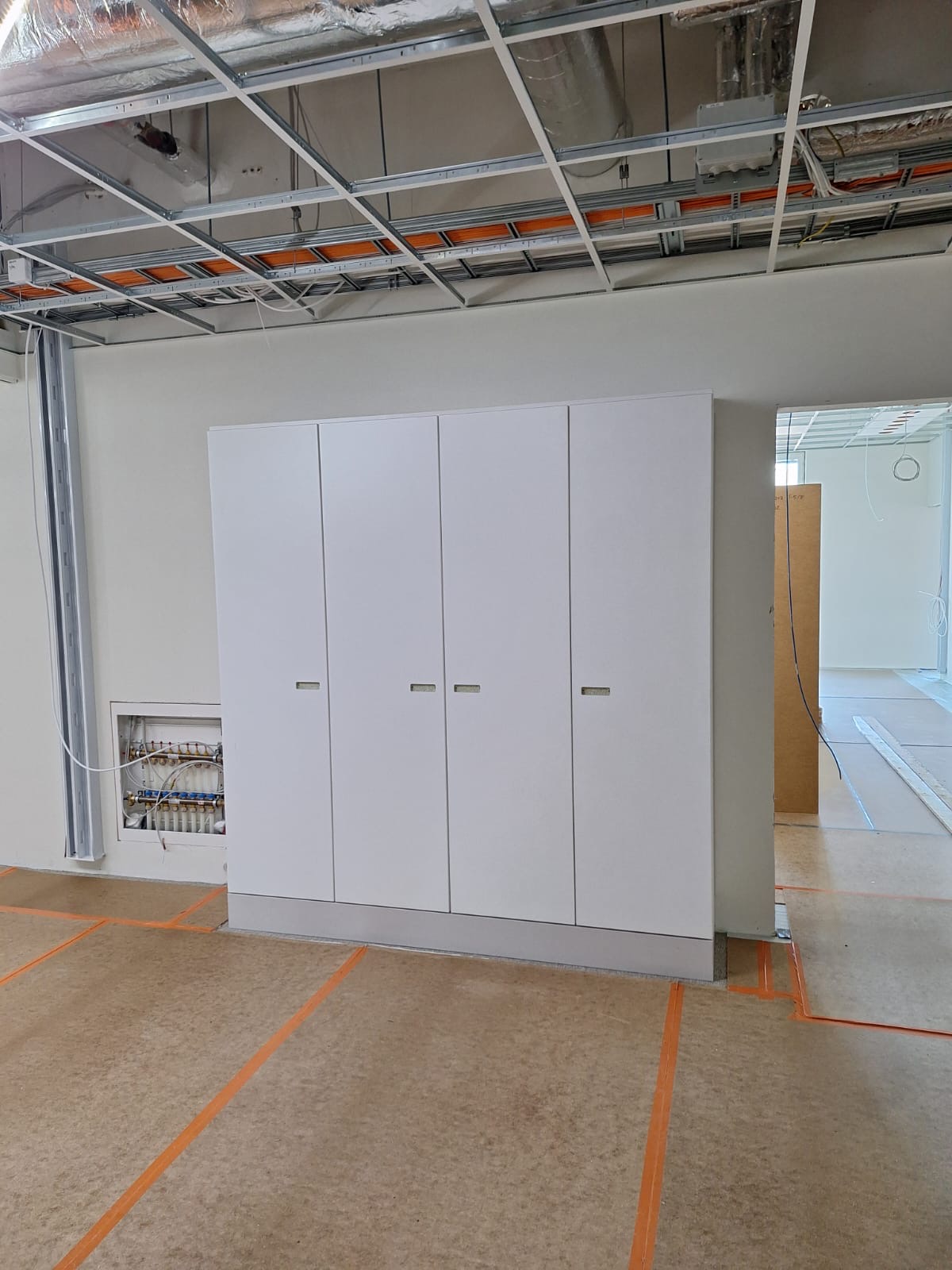 VVS, elinstallationer och installation av ventilationskanaler framskrider. P1-städningen fortsätter före ventilationsinstallationerna.