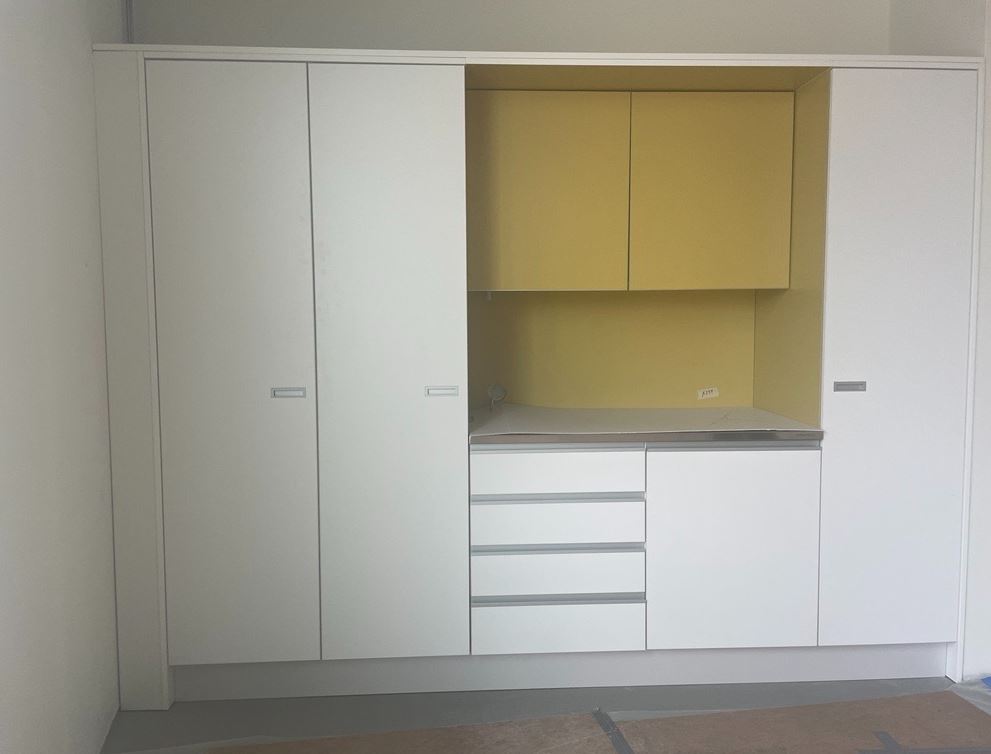 Flyttbara väggar har installerats på två sektioner i klassrum. Dessutom har basketställningar installerats i stora idrottssalen. Gipsskivväggar och kakelarbeten håller på att slutföras.