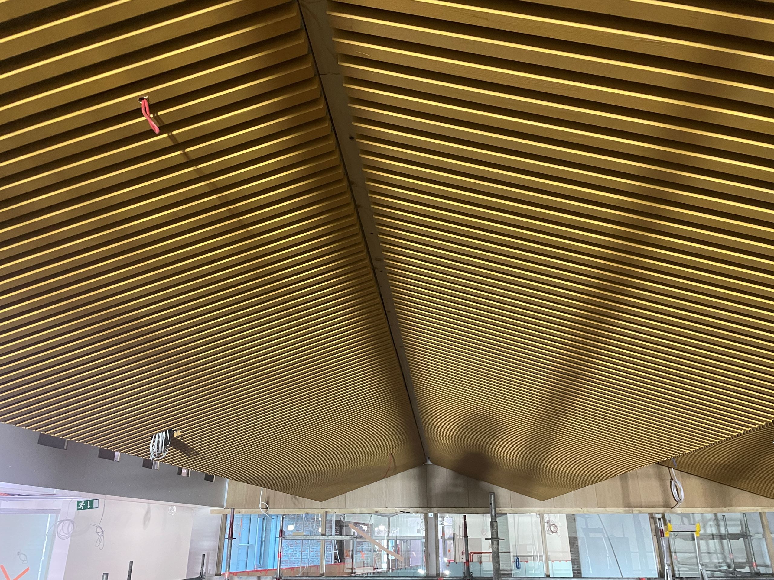 Inomhus fortsätter målning, möbelinstallation, dörrinstallation, golvlistarbeten, låsarbeten och textilmattinstallation. I aulan har undertaksarbeten (så kallat zikzak-undertak) gjorts. På block D pågår ytbehandling i klassrum. Undertaksarbeten flyttas därefter till det sista blocket.