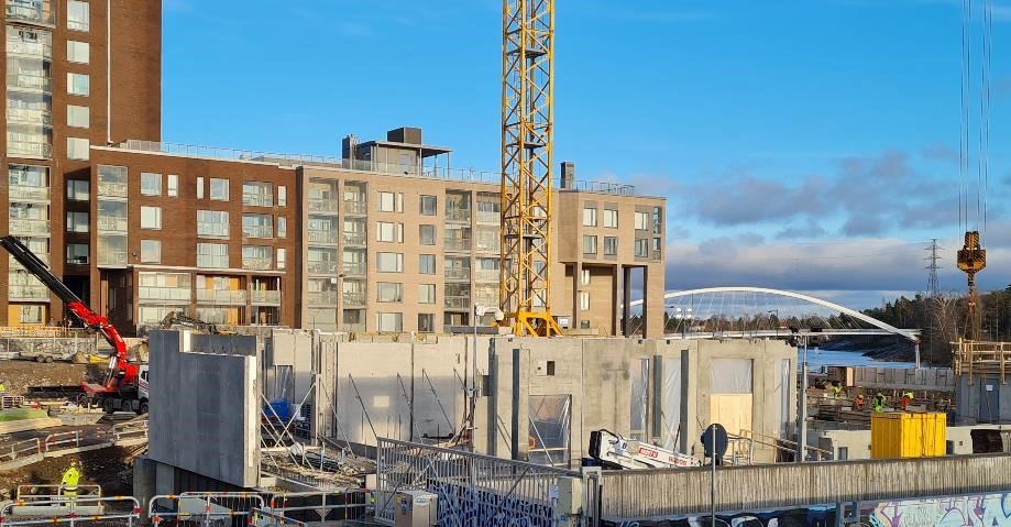 Kohteessa maanrakennustyöt, perustustyöt ja elementtien nostotyöt jatkuvat.