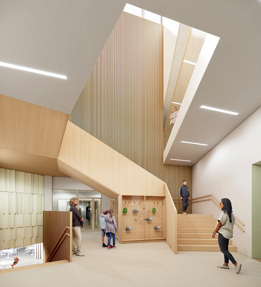 Pihan toiminnalliset alueet on selkeästi jäsennelty eri ikäryhmien tarpeisiin, mikä tekee liikkumisesta ja tilojen löytämisestä vaivatonta. Päiväkodin ja koulun pihat muodostavat lasten turvallisen toimintaympäristön rakennuksen läheisyydessä, ja isompien oppilaiden alueet sijoittuvat liikuntakenttien ja metsän tuntumaan. Luonnonläheiset ulkotilat, kuten avokalliot ja metsät, tarjoavat inspiroivia mahdollisuuksia oppimiseen ja yhteisölliseen toimintaan kaikenikäisille käyttäjille.
