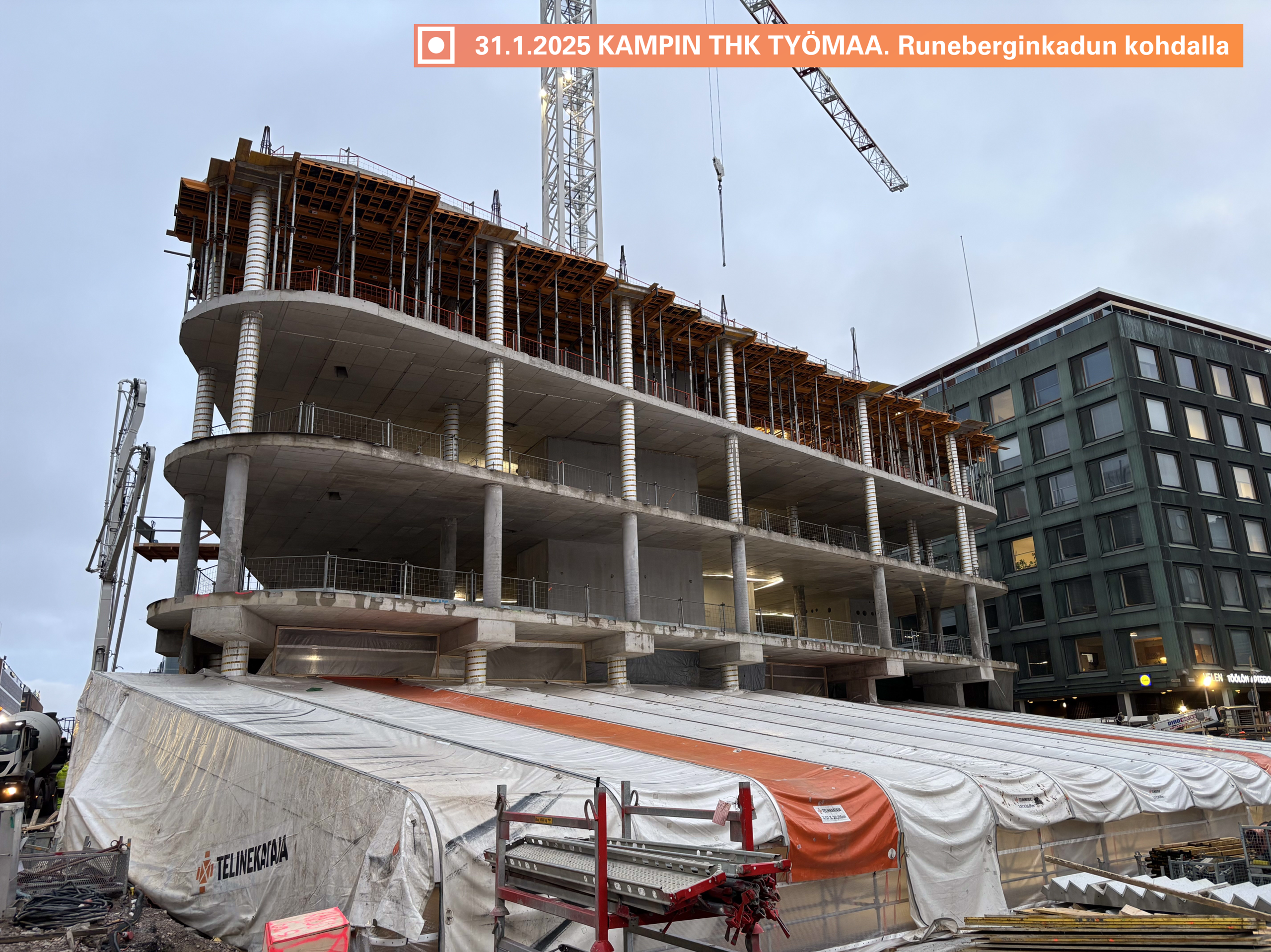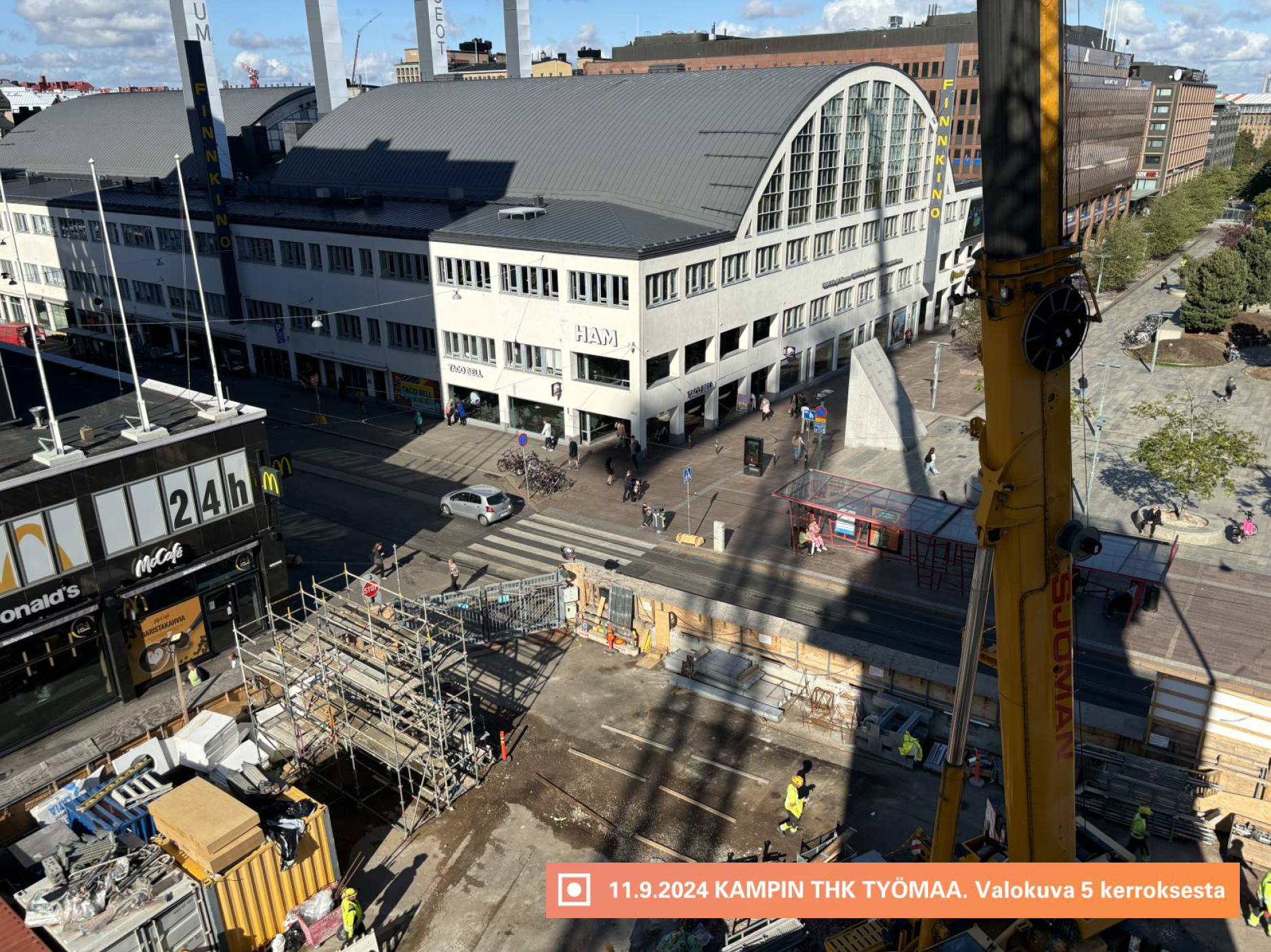 Sähkötalon pihakannen vedeneristeet Kampinkujalla uusitaan. Töiden olosuhdevaatimusten vuoksi Kampinkujalle pystytetään sääsuojateltta 2025 syys-lokakuun vaihteessa.
