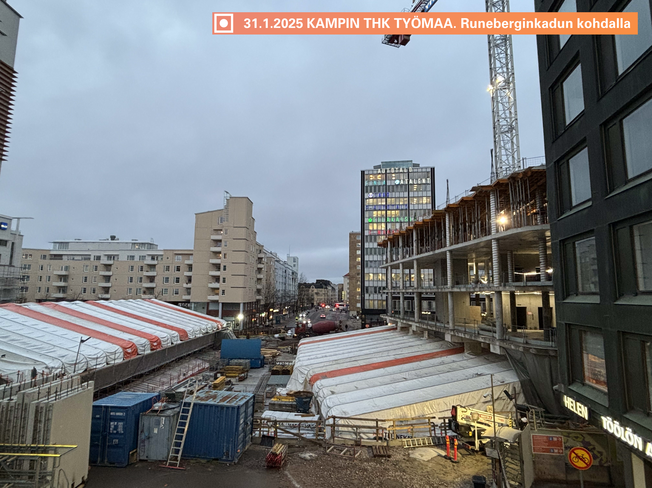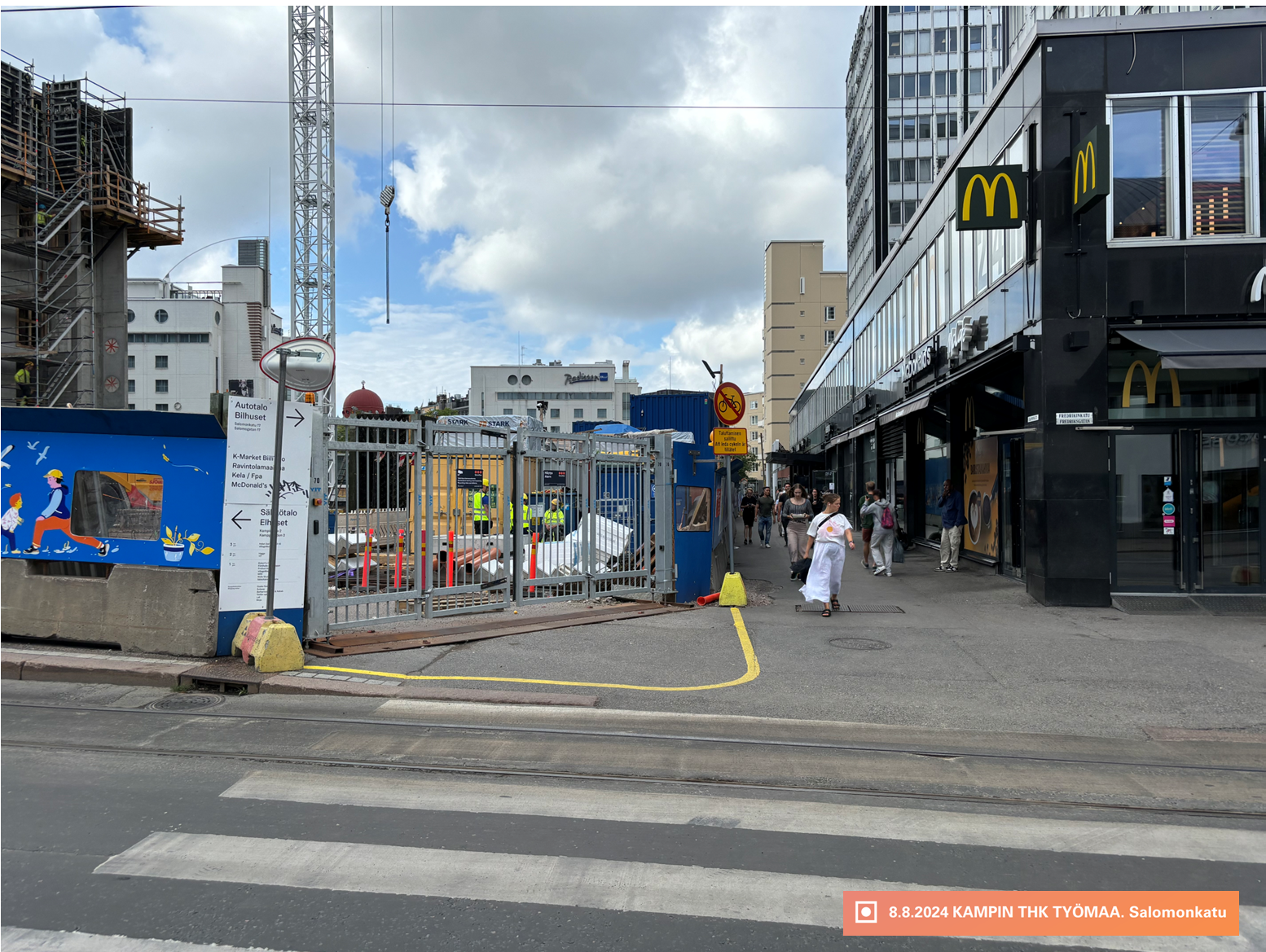 Runeberginkadun kävely-yhteys on suljettu lyhyeltä matkalta Salomonkadun eteläpuolelta Kampissa. Jalankulkijat ohjataan Malminkadun ja Salomonkadun kautta kulkevalle kiertoreitille.