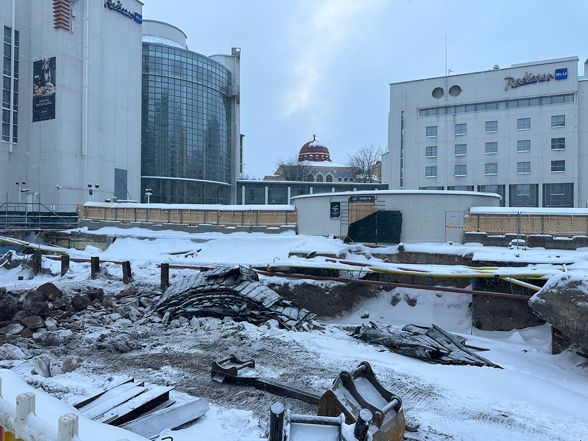 - Kampinkujan arkadin alle rakennetaan väliaikainen liuska Fredrikinkadulle.