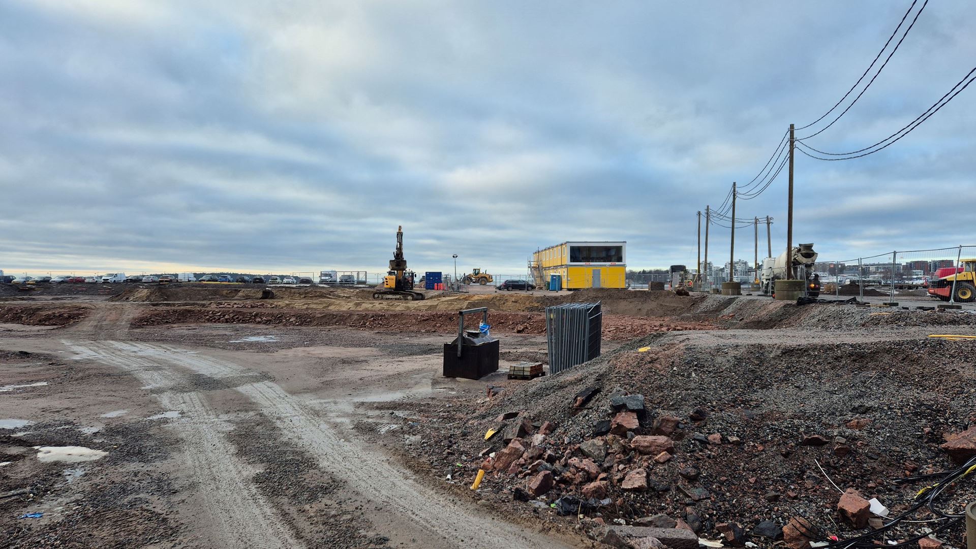 Kohteen työmaatoimistot ja sosiaalitilat ovat nyt asennettu. Rakennustyöt etenevät maanrakennus- ja porapaalutustöillä.