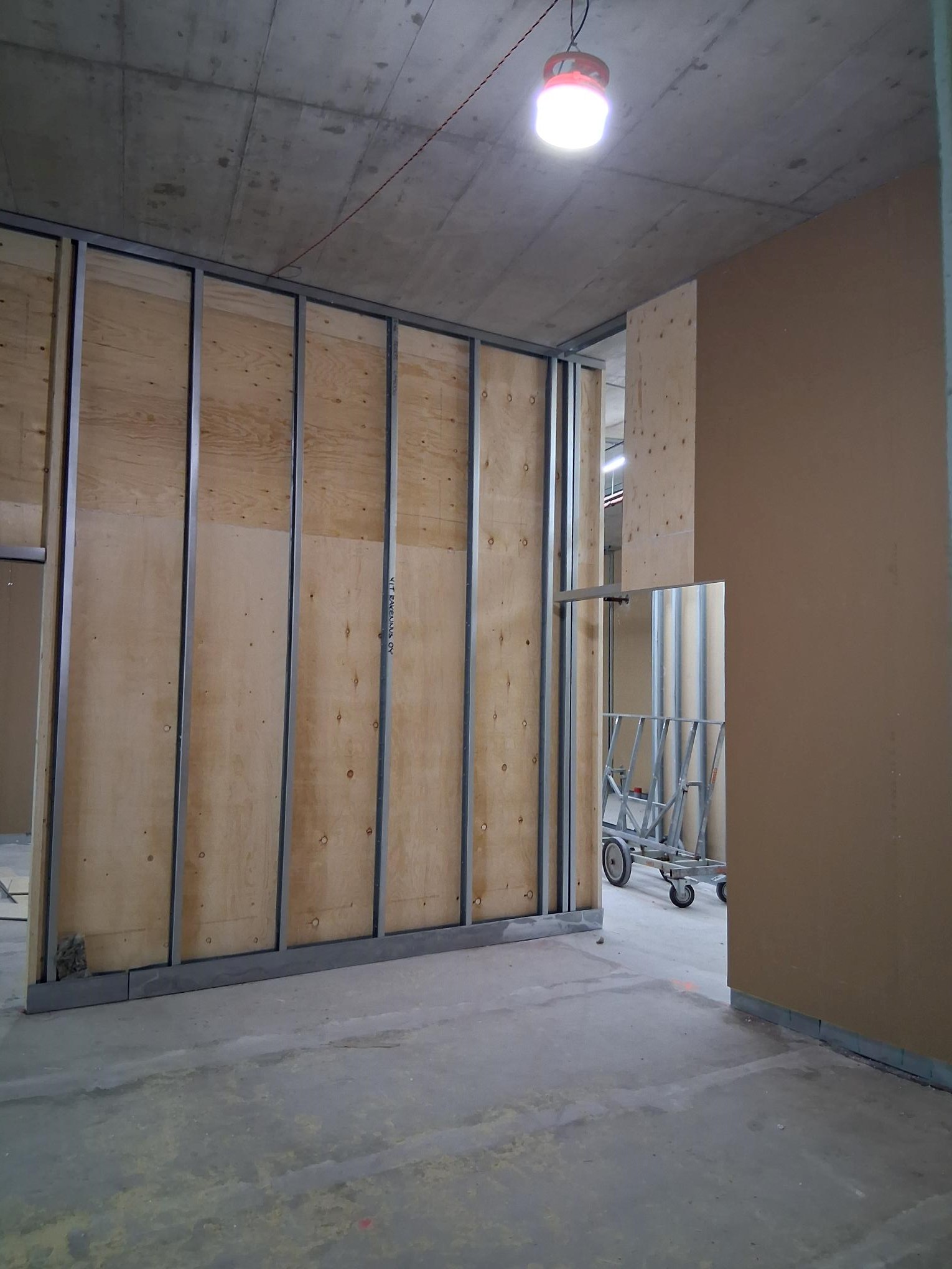 Rakennuksen sisätyövaiheen osalta käynnissä muun muassa LVIS-asennustyöt, Levyrakenteiset väliseinät, kivi-, harkkoseinät ja lattiatöiden valmistelut.