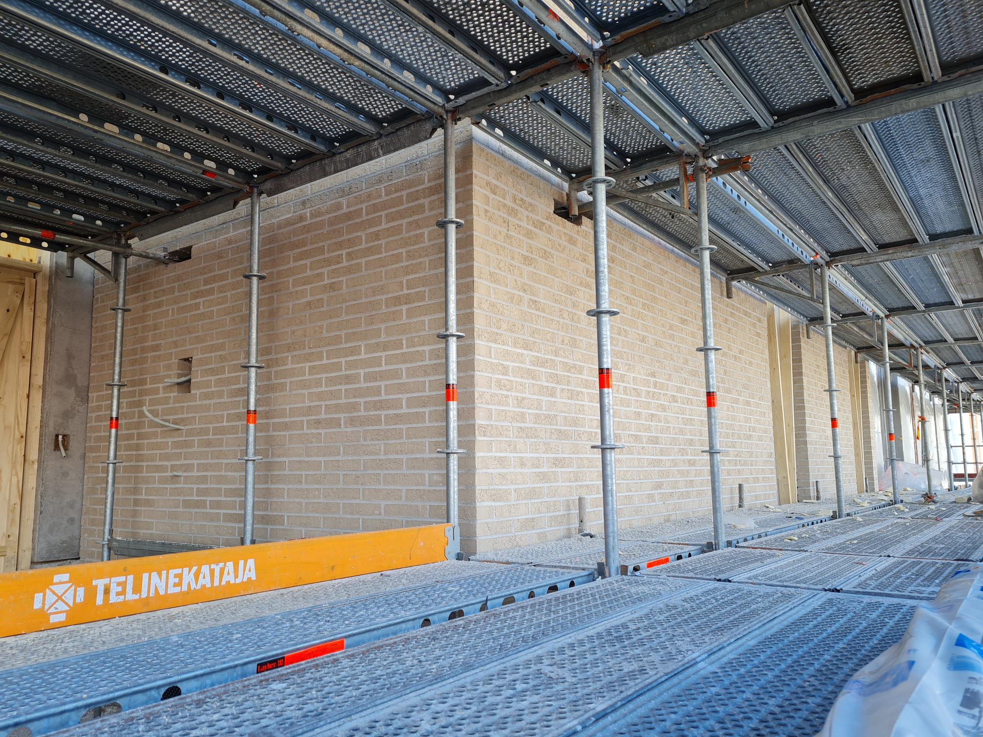 Sisäpuolen työtkin on saatu aluilleen. Pintalattioita on valettu ja väliseinätyöt ovat alkamassa. Nämä työvaiheet kestävät kokonaisuudessaan useita kuukausia ja lisäksi työmaan edetessä päästään myös muiden sisäpuolen työvaiheiden pariin.