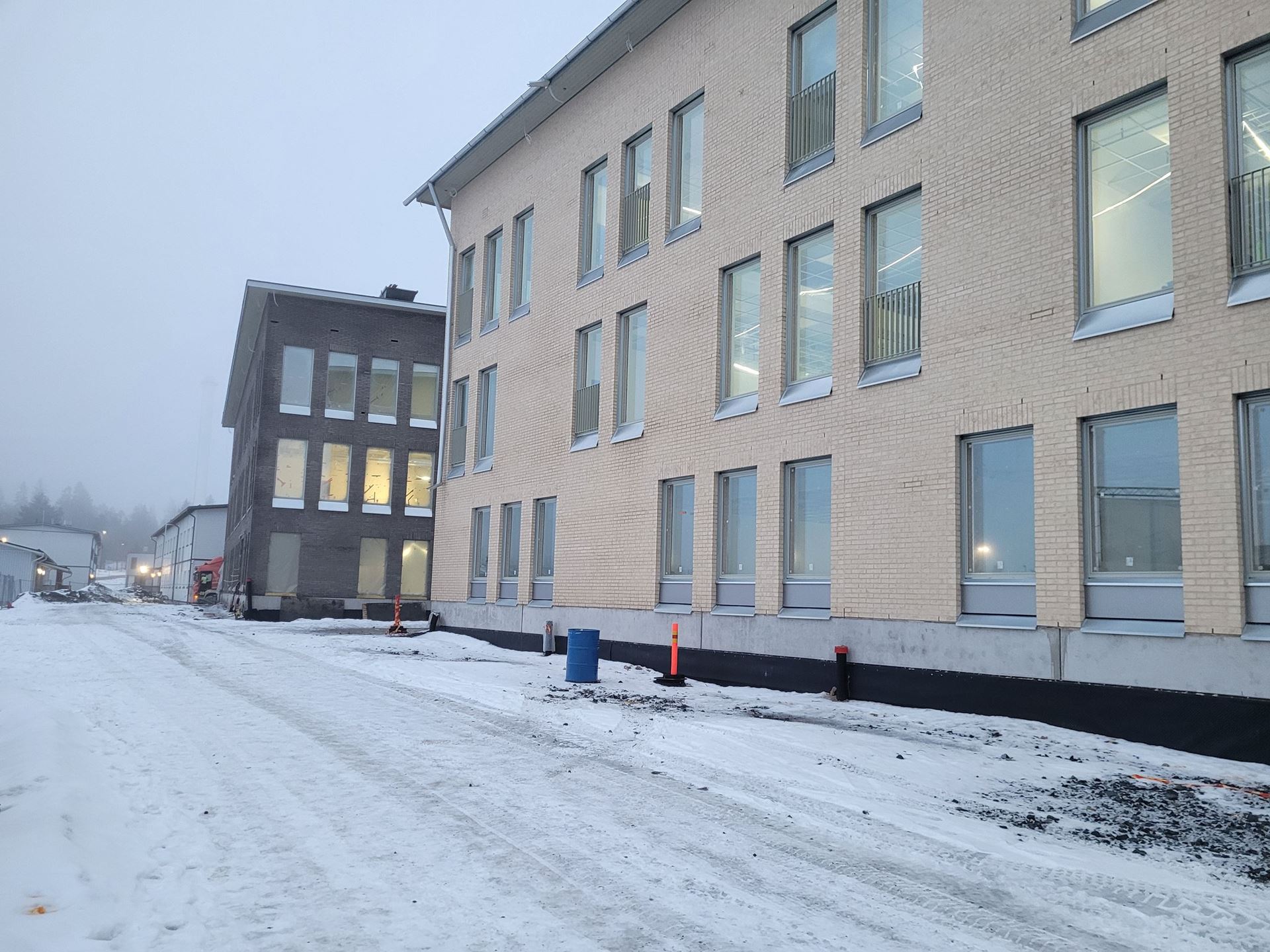 Rakennus on myös nyt pois säänsuojan alta, ja julkisivumuurauskin on lähes valmis. Ulkoverhouksessa on käytetty seitsemää eri tiiltä ja kuutta eri sävyistä laastia näiden kiinnittämiseen.