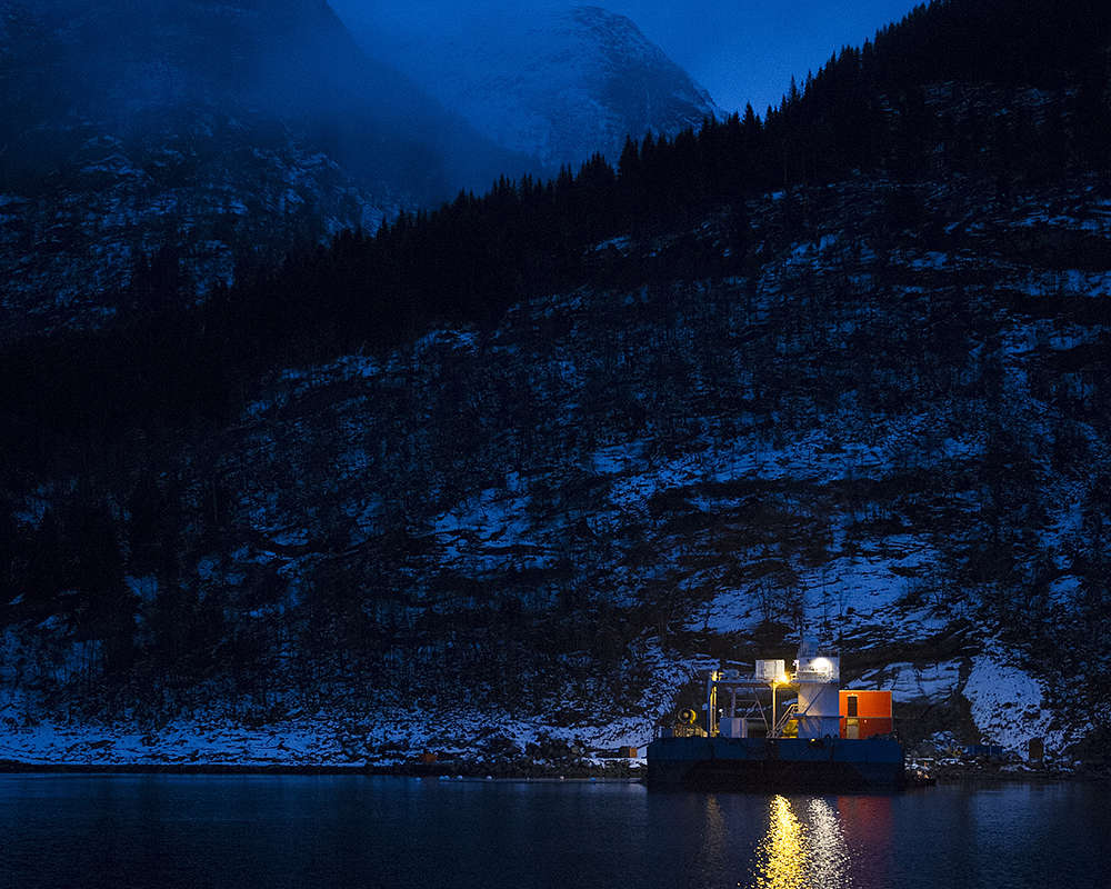 Rakensimme Länsi-Norjan upeassa vuoristomaisemassa vesivoimalaitoksia energiayhtiö Småkraftille. Työmaalle pääsi vain vesitse tai helikopterilla, mikä toi urakkaan omat haasteensa.