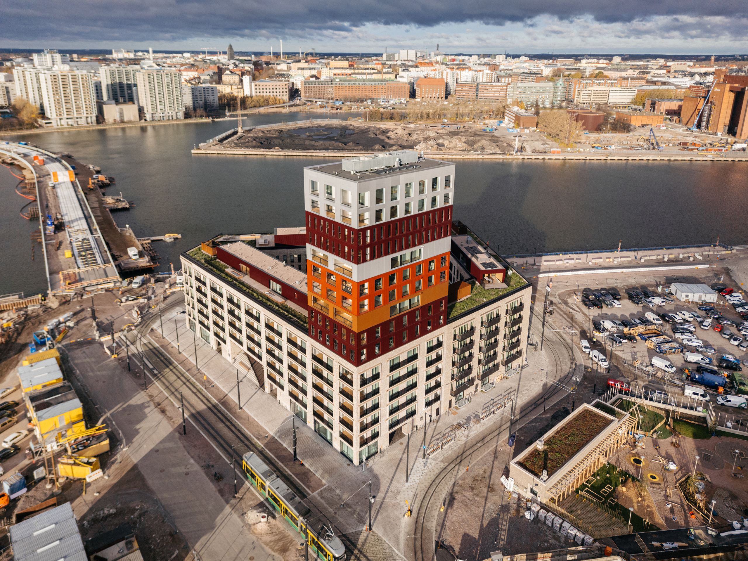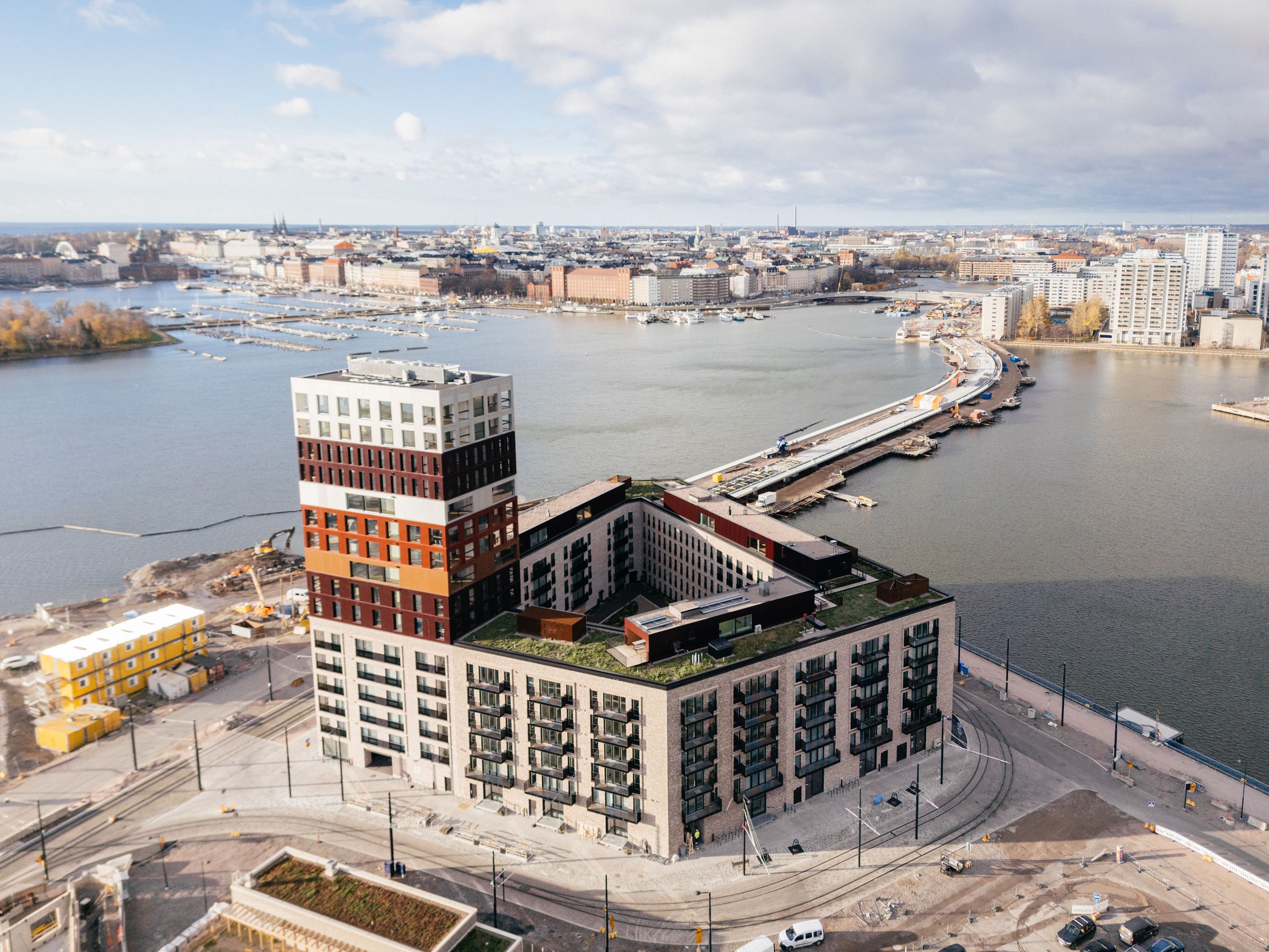 Kolme tasokasta asuinkerrostaloa uuteen merelliseen kortteliin Helsingissä.