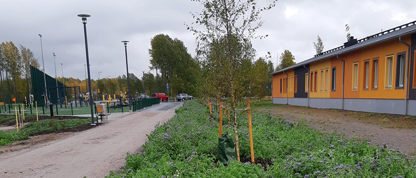 Rakensimme Espoon Perkkaalle koulun ja nuorisotilan läheisyyteen monipuolisen Perkkaanniityn liikuntakentän, joka on koulun käytössä.