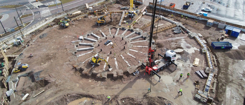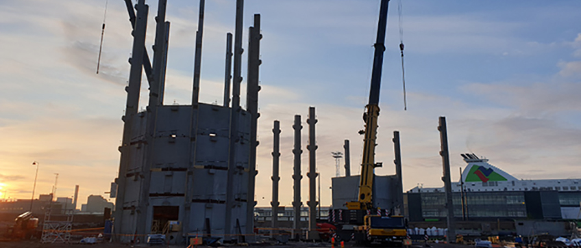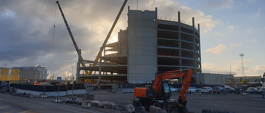 Urakkaan kuului noin 730 pysäköintipaikkaa ja aulatilat sisältävä pysäköintihalli. Työt alkoivat tammikuussa 2020 massiivisella porapaalutuksella, vaativien pohjaolosuhteiden takia. Porasimme maaperään noin kolmesataa keskimäärin 30 metrin pituista porapaalua vahvuudeltaan 220 ja 230 millimetriä. Elementtien pystytys alkoi huhtikuun lopulla. Rakennuksen keskellä on ontto tornimainen rakenne, joka toimii jäykistävänä rakenteena ja talvella sitä hyödynnetään katolle kertyvien lumien pudotuspaikkana.