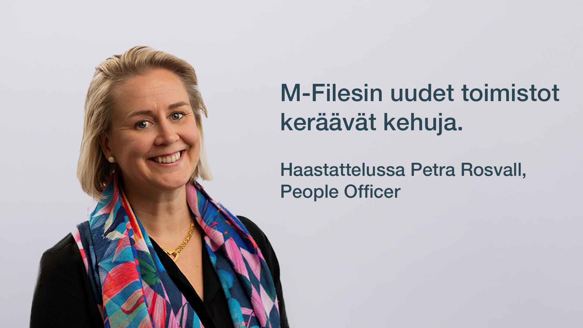 M-Filesin Chief People Officer Petra Rosvall kertoo uusien tilojen saaneen paljon positiivista palautetta.