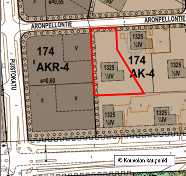 Tonttiin voit tutustua Kouvolan karttapalvelussa.
