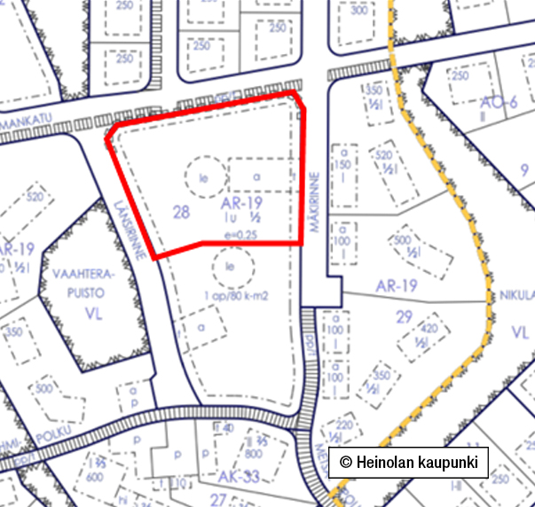 Tonttiin voit tutustua Heinolan karttapalvelussa.