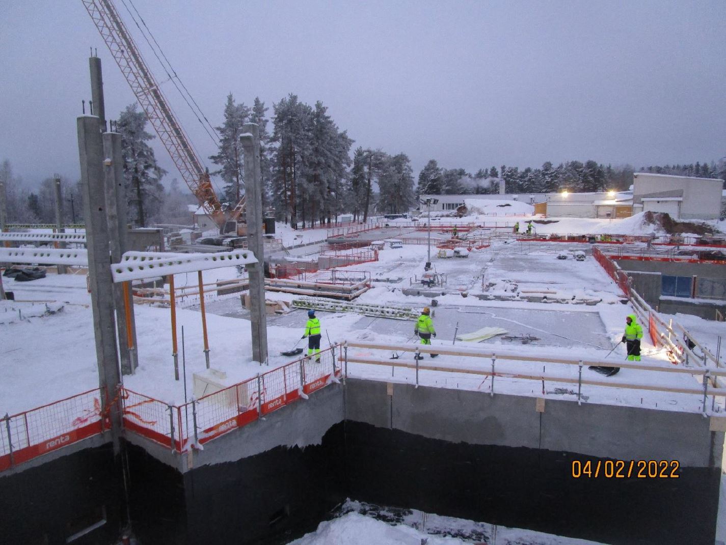 - elementtiasennus 1-2 kerroksessa (elementtiasennus jatkuu 5-2022 asti)