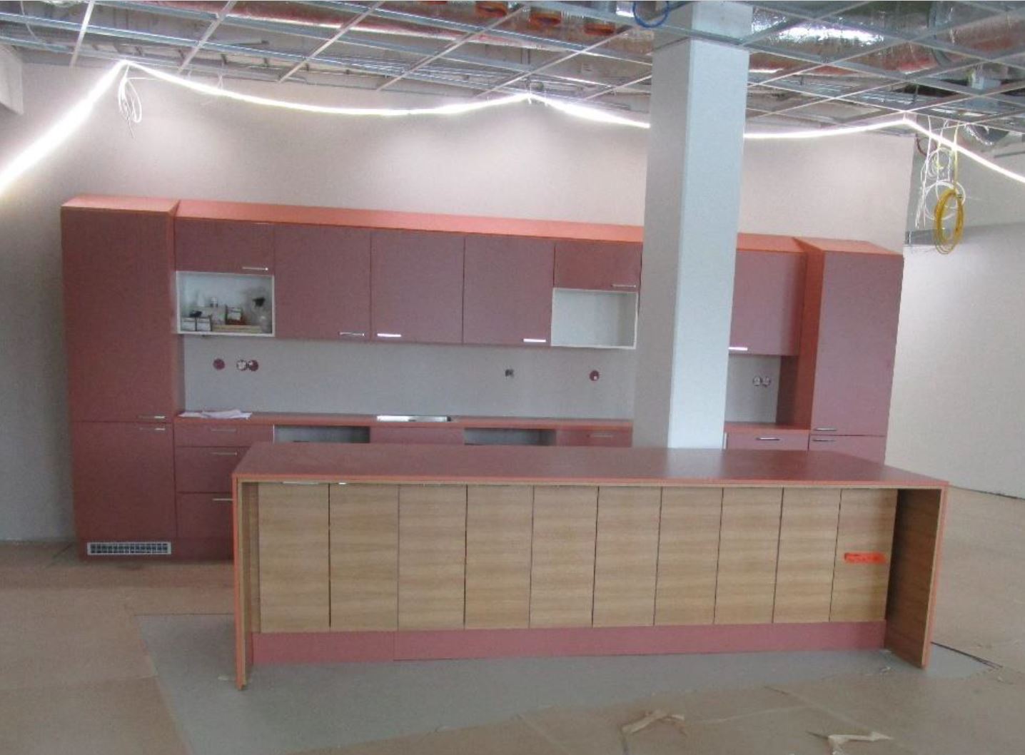 • Sähköasennukset jatkuvat mm. väliseinäkaapeloinneilla, johtoreitti- ja paloilmaisinasennuksilla sekä sähkökalustuksella