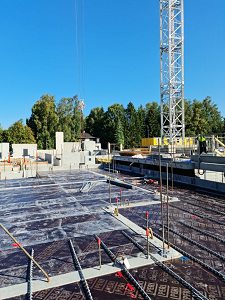 Työmaalla on käynnissä ensimmäisen kerroksen holvin raudoitukset sekä talotekniikan asennukset.