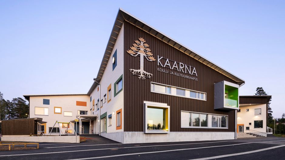 ”Olemme halunneet miettiä oppilaiden koulupäivää kokonaisuutena eli myös sitä, mitä tapahtuu koulutuntien jälkeen. Tässä rakennuksessa kaikki toiminnot ovat saman katon alla. Oppilaiden ei välttämättä tarvitse lähteä rakennuksesta illallakaan, sillä täällä toimii myös paljon järjestöjä ja kolmatta sektoria”, Annala kertoo.
