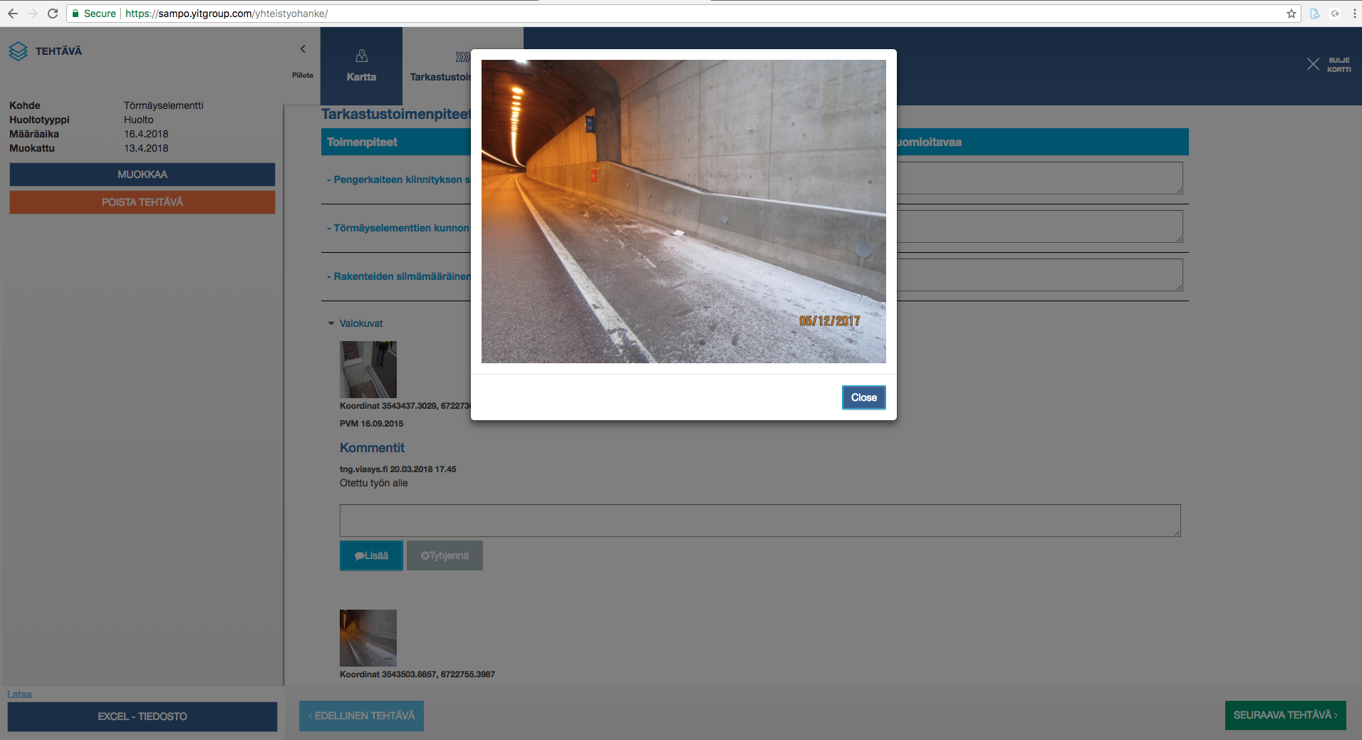 Älykästä huoltokirjasovellusta kokeiltiin ensi kertaa E18 -moottoritien Vaalimaan tunnelissa huhtikuussa 2018, ja projektityöryhmämme oli innoissaan positiivisesta vastaanotosta työmaalla. Tästä on hyvä ponnistaa eteenpäin!